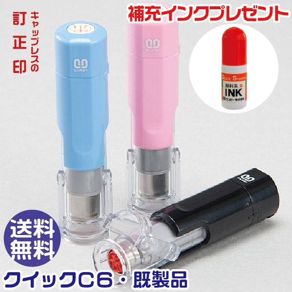 [補充インクプレゼント] 訂正印 キャップレス サンビー クイックC6 既製品 修正印 送料無料 ネーム6 キャップレス キャプレ 浸透印 印鑑 かわいい ナース ハンコ はんこ 看護師 ワンタッチ ナース印鑑 ネーム印 カバー ネーム6 判子 ナースグッズ 6ミリ キャプレ いんかん