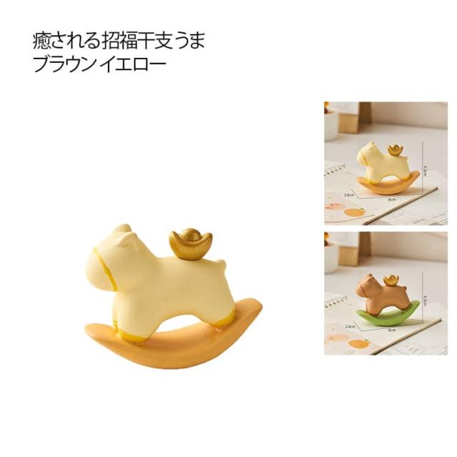 コンパクト 置物 オフィスに飾り みくじ 招福干支 イエロー 2026 ブラウン おしゃれ 癒される 午 うま 馬置物 卓上 縁起物 金運 車 樹脂 インテリア お正月 お年賀 部屋 玄関飾り 出産祝い 結婚祝い 誕生日