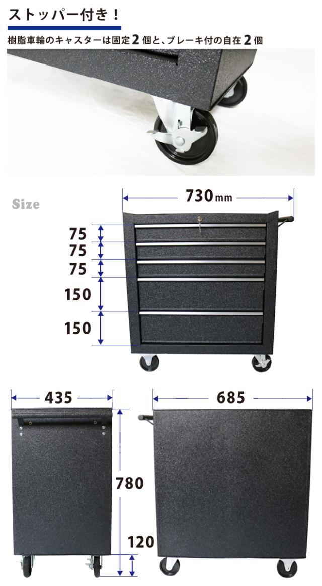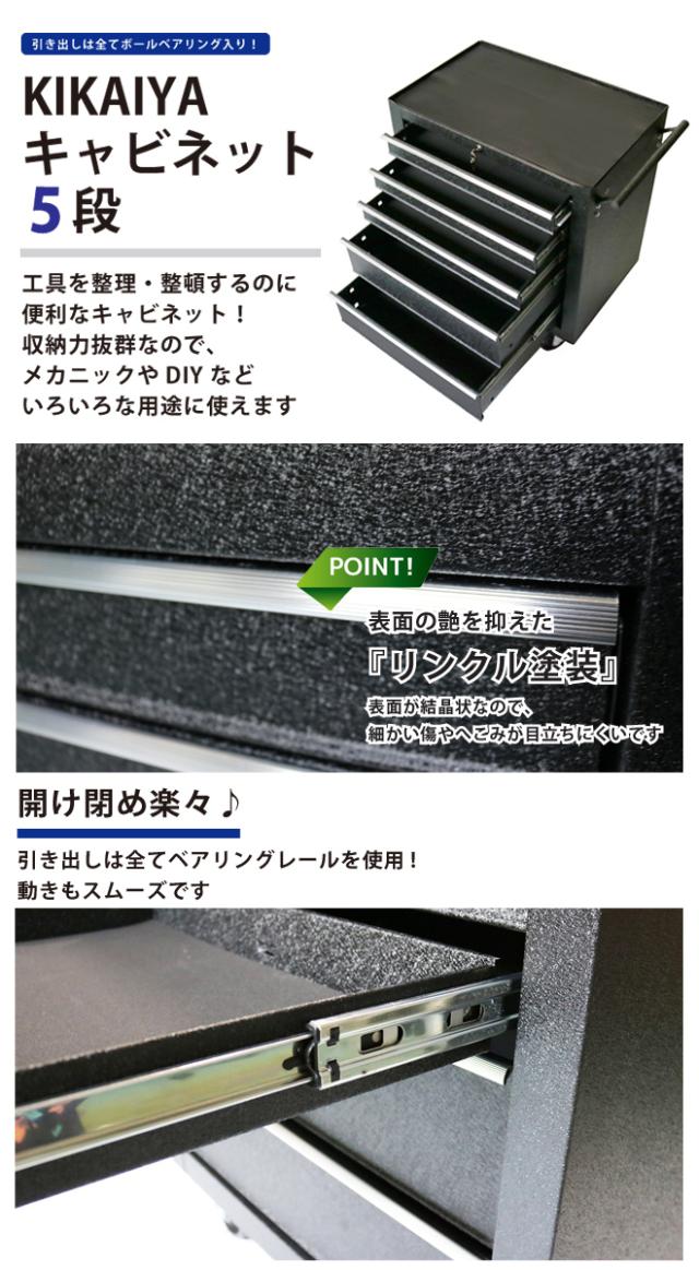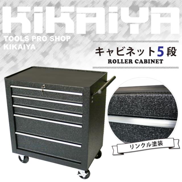ローラーキャビネット 5段 リンクル塗装 ブラック ロールキャビネット ツールボックス ツールキャビネット 工具箱 TBR-5 KIKAIYA