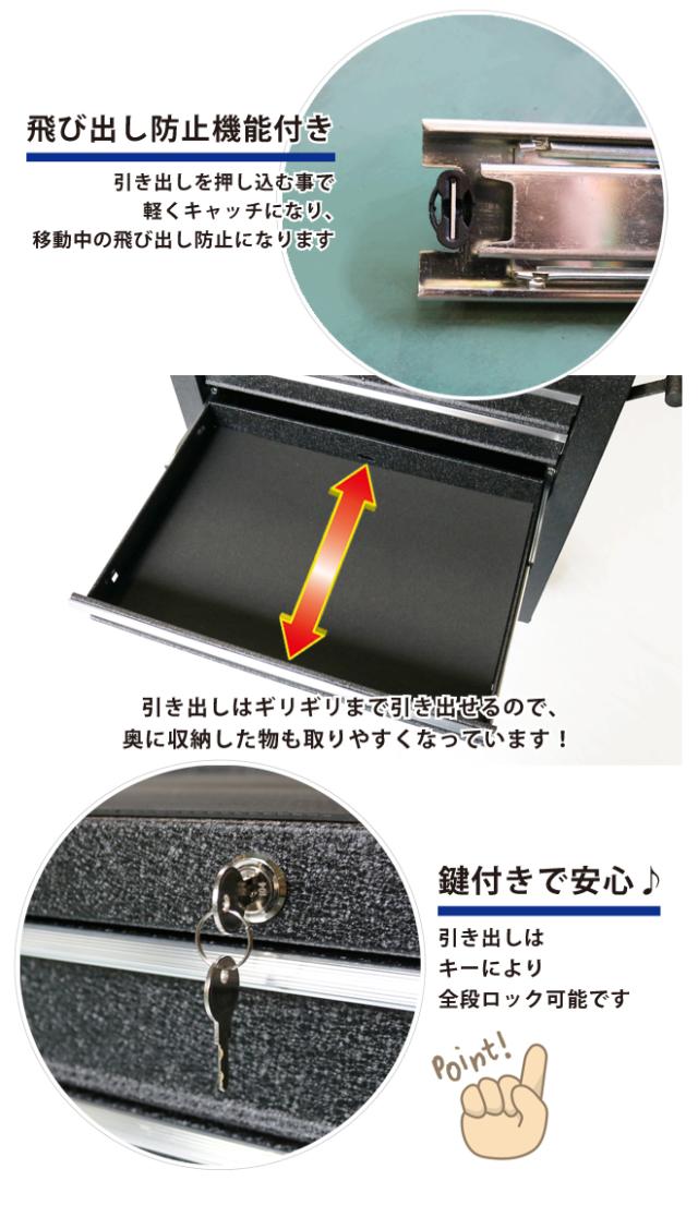 ・在庫1点限りです 自社他ショップで同時販売しているため、ご注文後、品切れする場合もございます あらかじめご了承ください ・・・・・・・・・・・・・・・・・・・・・・・・ リンクル塗装なので、細かい傷や汚れが目立ちにくい ●収納力抜群のキャビネット5段です ●リンクル塗装なので表面の艶を抑えています ●表面が結晶状なので、使用で発生する細かい傷や汚れが目立ちにくいです ●キーにより全段ロック可能です ●引き出しは全てベアリングレールを使用し、スムーズに動きます ●引き出しを押し込む事で軽くキャッチになり、飛び出し防止になります ●キャビネットの天板部分にゴムマット/引き出し部分に中敷きマットが付いております ●サイドの取っ手部分も握りやすい丸ハンドルとなっております ・取っ手・キャスターはお客様での取付けとなります ※取付け工具は付属しておりません *固定車輪2個を別売り自在キャスター(2個セット)に付け替えて、全て自在車輪にする事が可能です オプション別売り自在キャスター(2個セット)はこちら 品番:TBR-5 |
