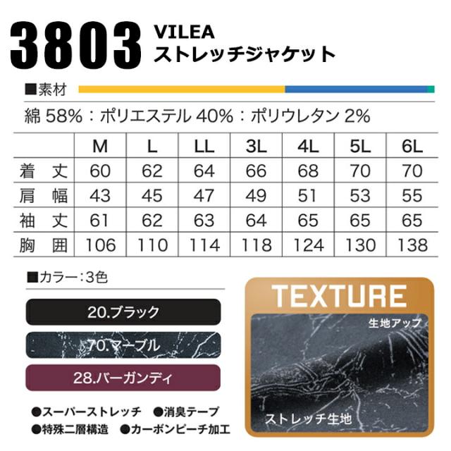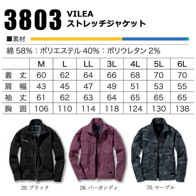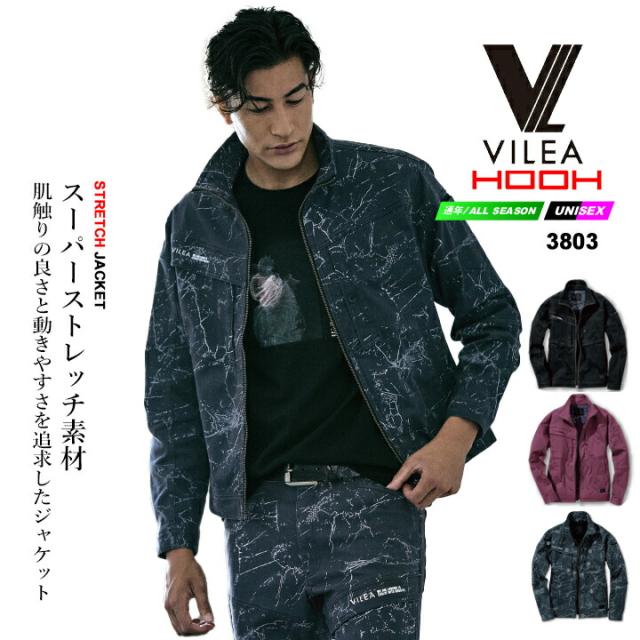 VILEA ストレッチジャケット 3803 スーパーストレッチ 微起毛 作業着 作業服 介護 ユニフォーム チーム 村上被服 HOOH