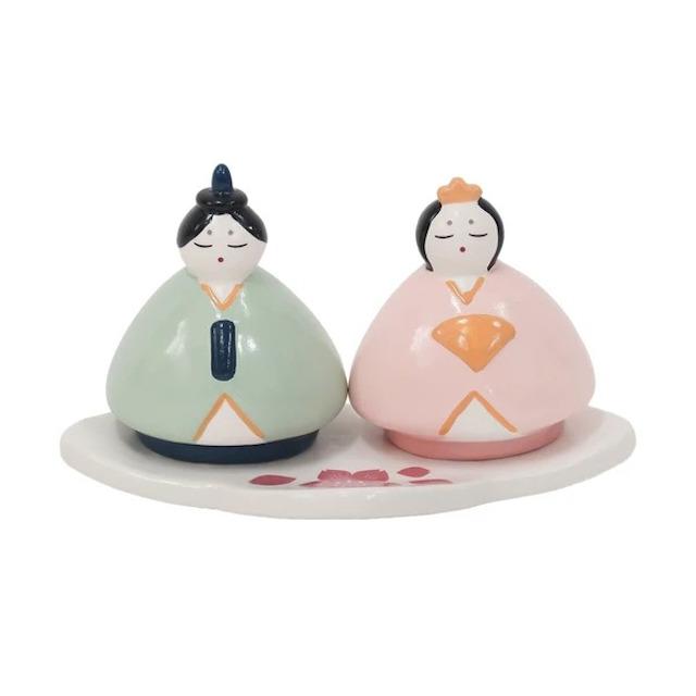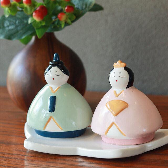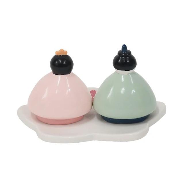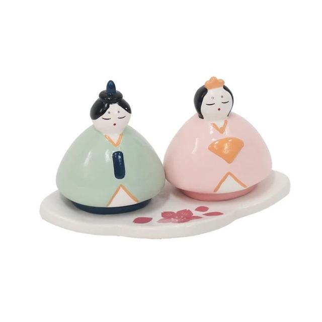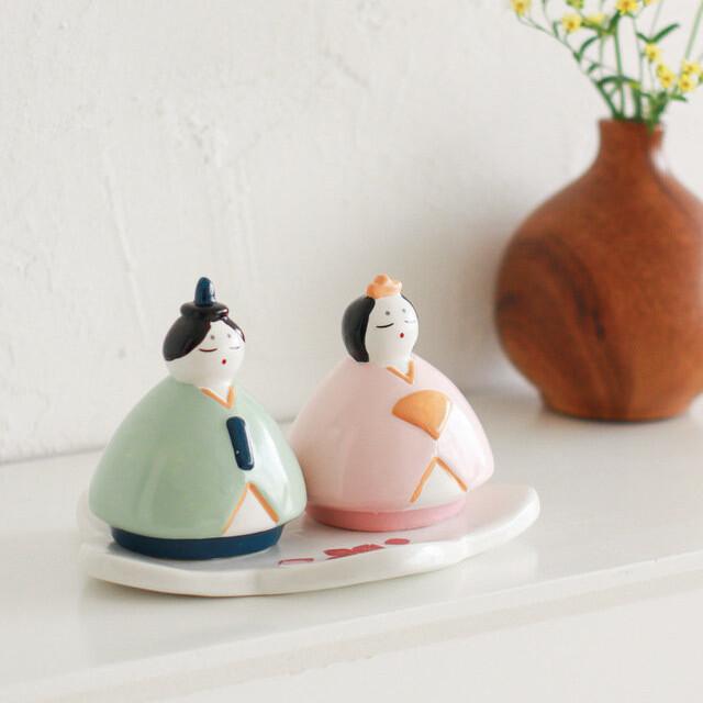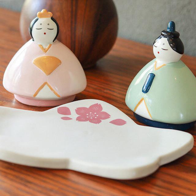 ころんとしたフォルムが愛らしい、手のひらサイズの磁器製ひな祭りオブジェ。