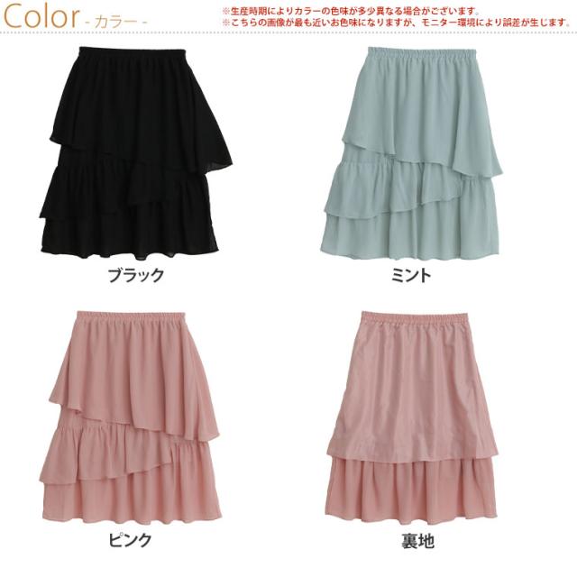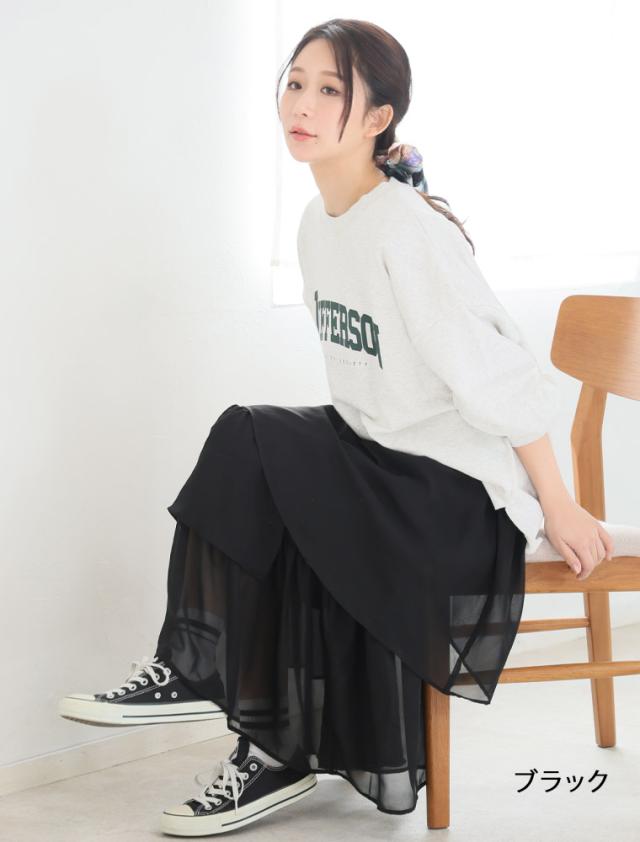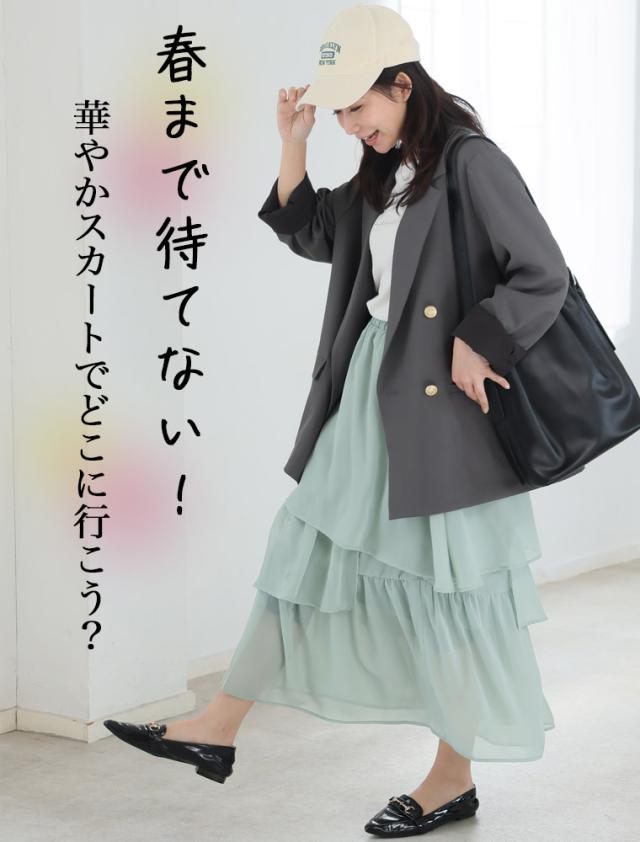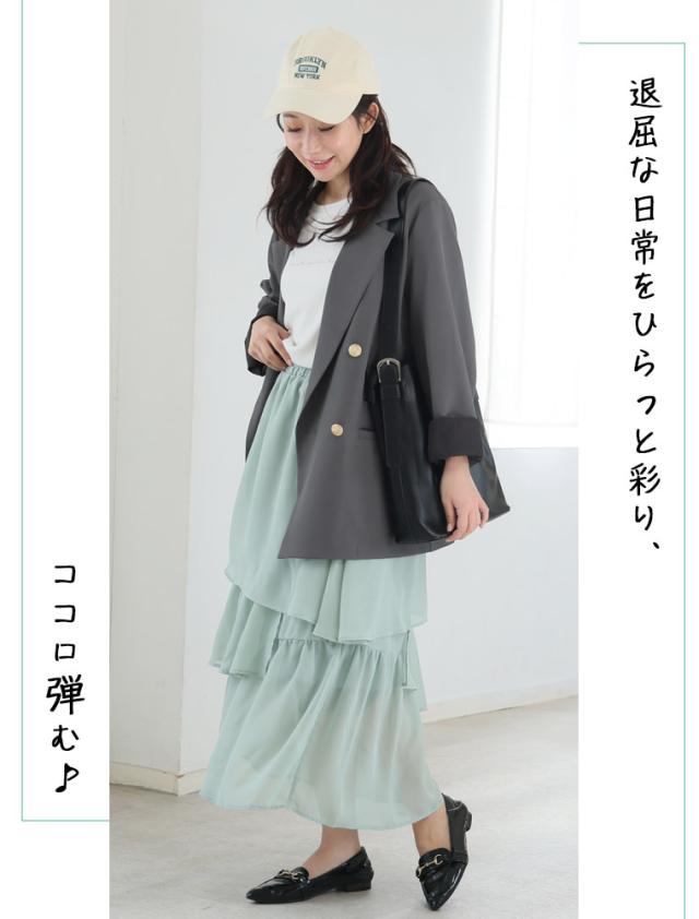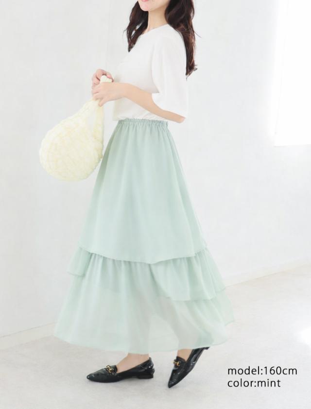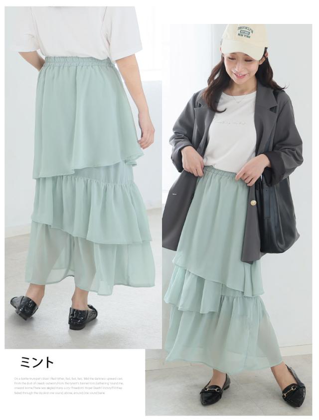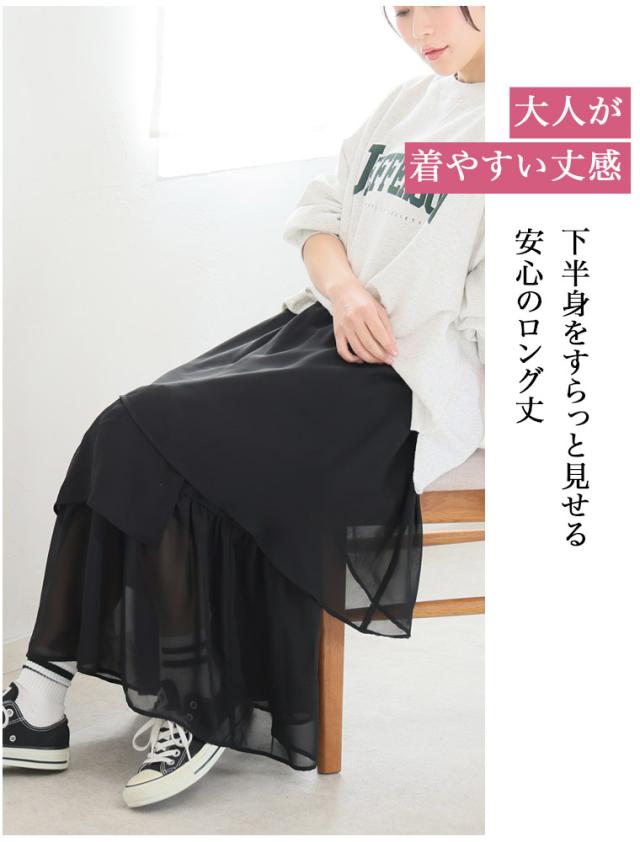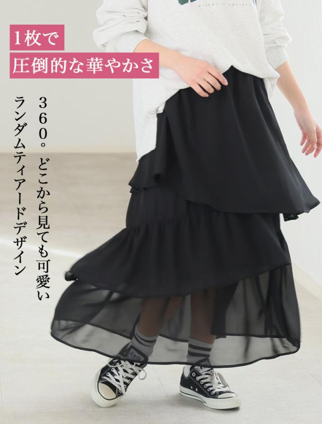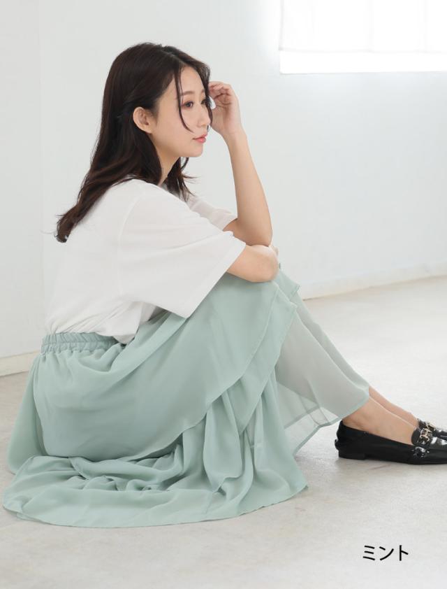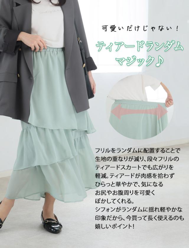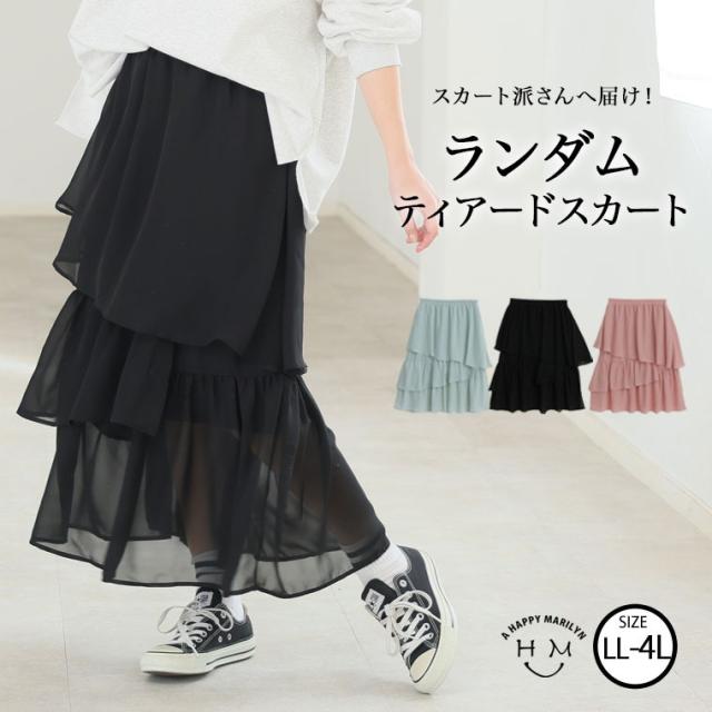 新作 大きいサイズ レディース スカート | ランダムティアード シフォン フレア ロングスカート [862027] LL 3L 4L