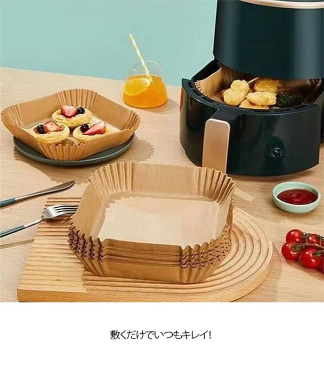 エアフライヤー用紙 300枚入り 3-6L適用 スクエア型 エアフライヤー専用紙 クッキングシート 天ぷら敷紙 油紙 防水 耐油 230℃耐熱 揚げ物 ケーキ お菓子 使い捨て 茶色 キッチン専用 ノンフライヤー/電子レンジ/オーブン/蒸し器利用可能 送料無料