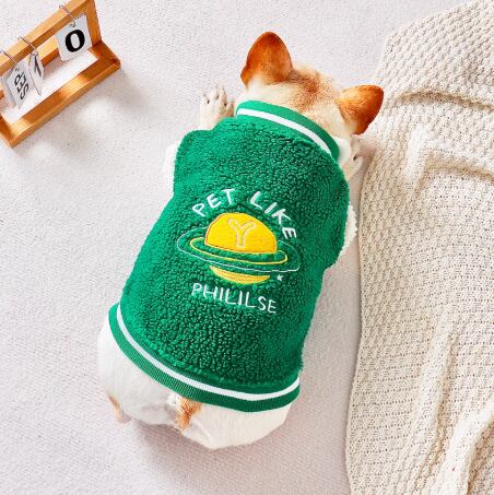 犬服 スタジャン ジャケット 秋冬 おしゃれ スポーツ風 パーカー 防寒 フレンチブルドッグ トイプードル チワワ ダックス 小型犬 中型犬 18番デザイン ペットウェア 犬用 洋服 グリーン