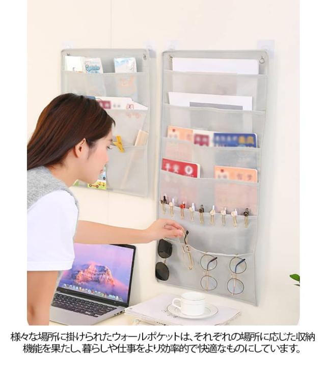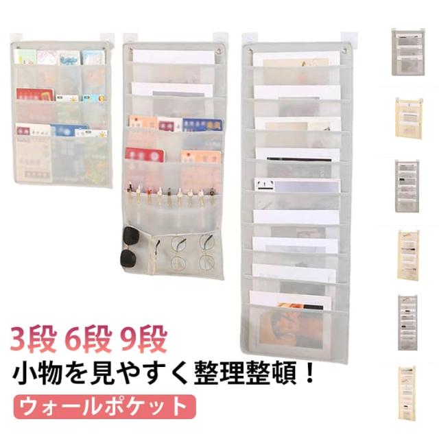 | 3段 6段 9段 小物を見やすく整理整頓! ウォールポケット。 シンプルなデザインは、お部屋の雰囲気にしっくりなじみます。 壁やクローゼット、ポールハンガーなどにかけて、雑貨・小物や雑誌の壁掛け収納に便利。 オフィスや事務所、寝室、洗濯室、玄関、お部屋などの場所に最適です。シンプルでおしゃれな見た目です インテリアとしての見せる収納に◎使わない場合コンパクトに折りたたみができ、隙間にも収納できて、超省スペース化! 玄関、寝室、居間、さらにオフィスのデスク周りにもウォールポケットが掛けられてスペースを整理でき、必要なものをすぐに手に入れることができます。 様々な場所に掛けられたウォールポケットは、それぞれの場所に応じた収納機能を果たし、暮らしや仕事をより効率的で快適なものにしています。 引越しや持ち帰りなどの場合も持ちやすいです。 | |