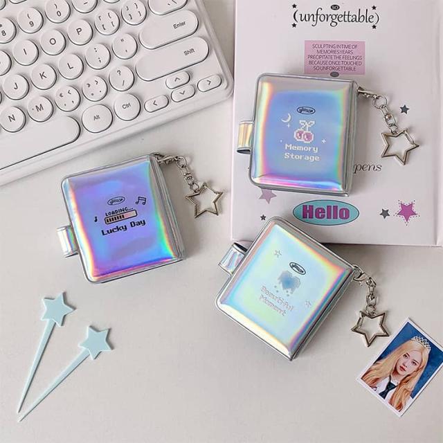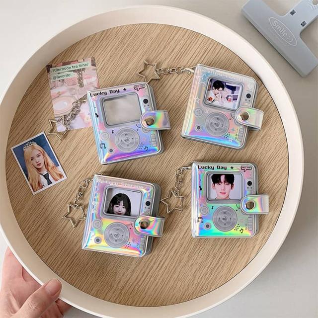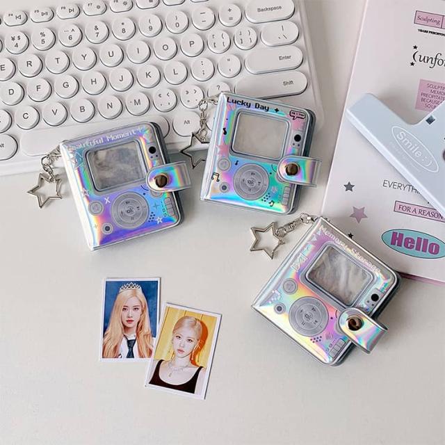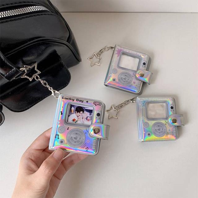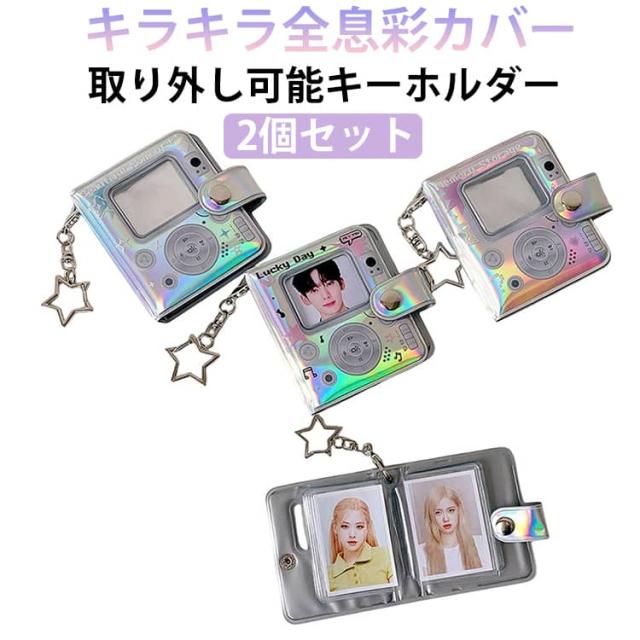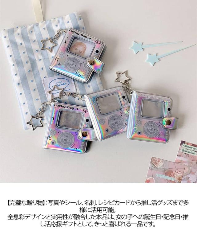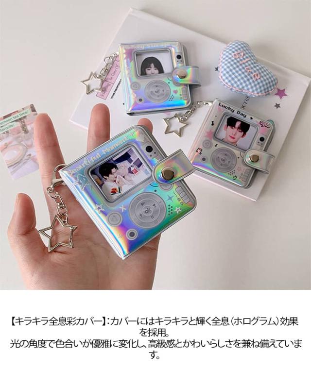 ホログラム シール帳 かわいい ページ16枚付き 2インチ写真収納 キーホルダー付き 【2個セット】 推し活グッズ 携帯便利 取り外し可能キーホルダー スターカード DIY ミニアルバム 記念フォトアルバム 名刺 整理 結婚記念日 応援 女の子