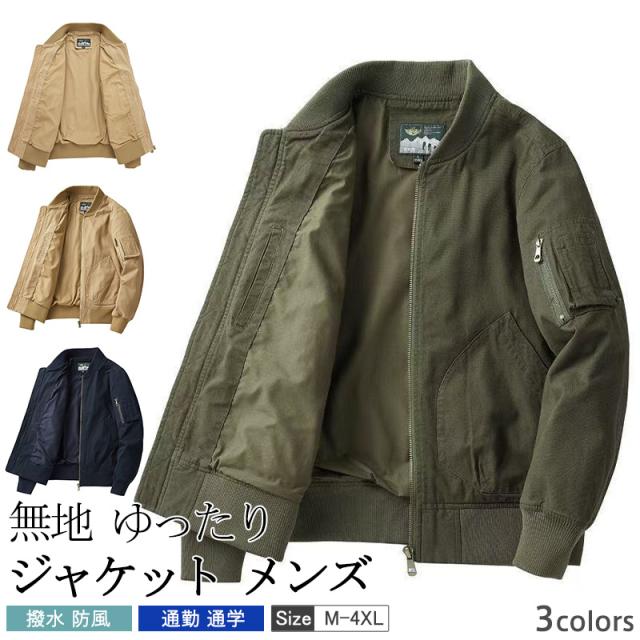 ミリタリージャケット メンズ ジャケット ジャンパー ミリタリーワッペン ジップアップジャケット ファスナー 無地 大きいサイズ