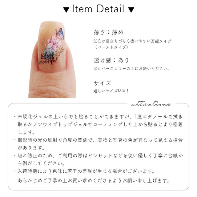 ノンワイプトップジェルでコーティングした上から貼るとより密着します。