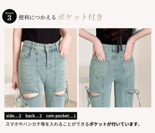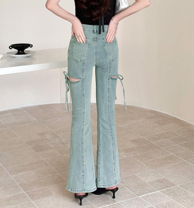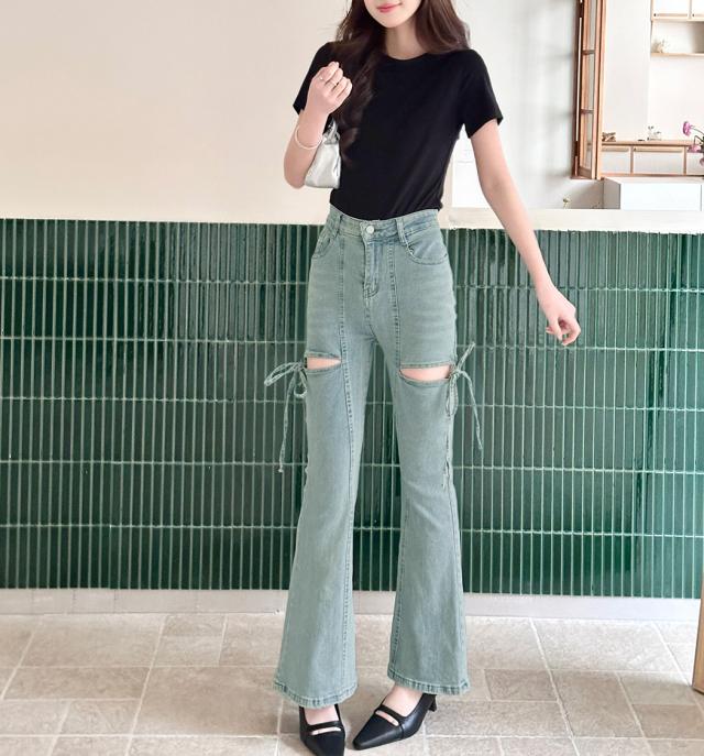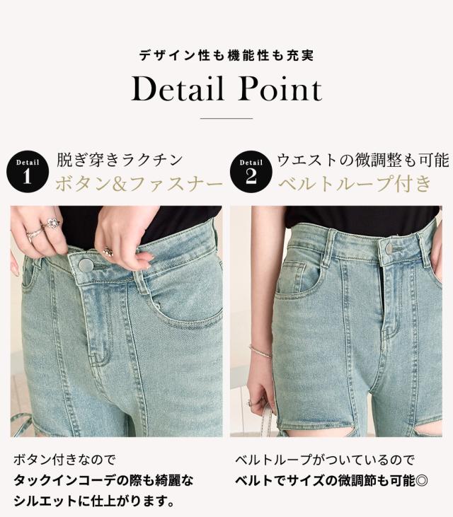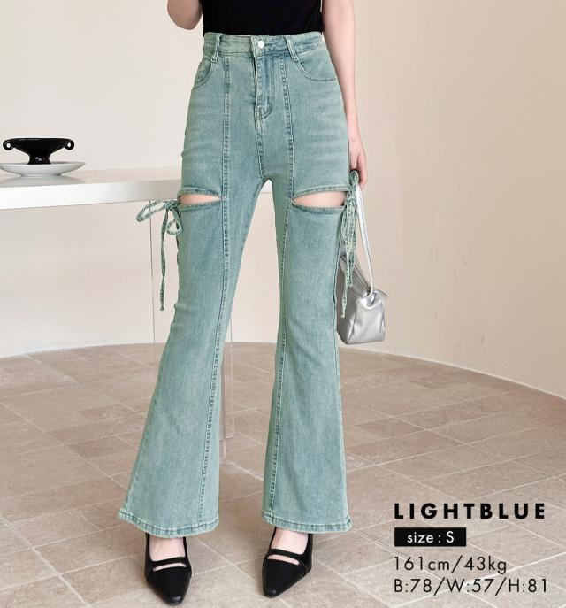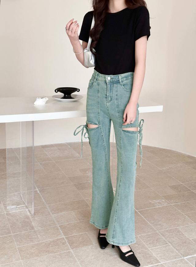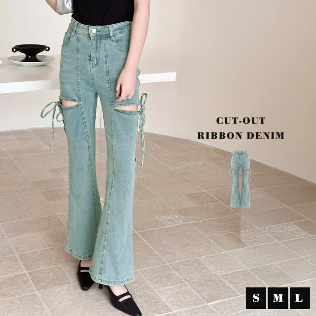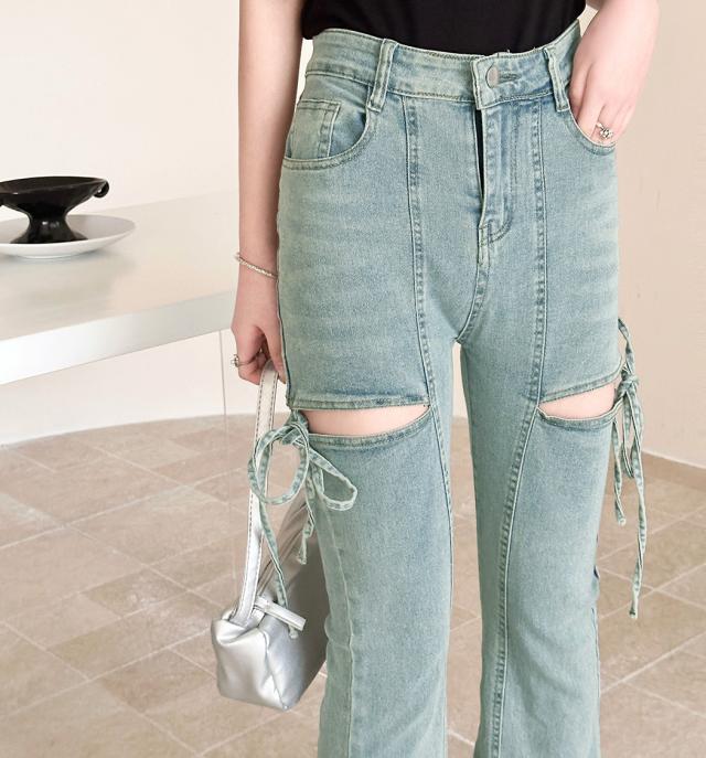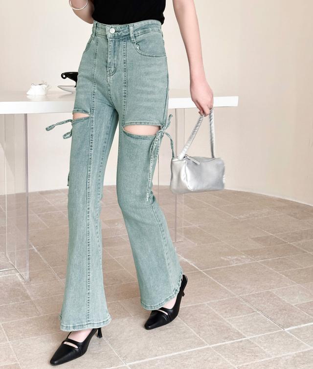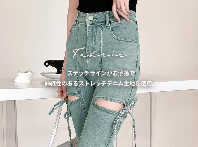カットアウトリボンデニムパンツ