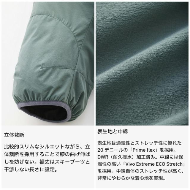 中綿はソフトな「Vivo Extream ECO Stretch」と、保温性と通気性、ストレッチ性を兼ね備えます。