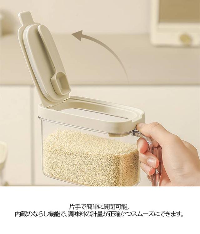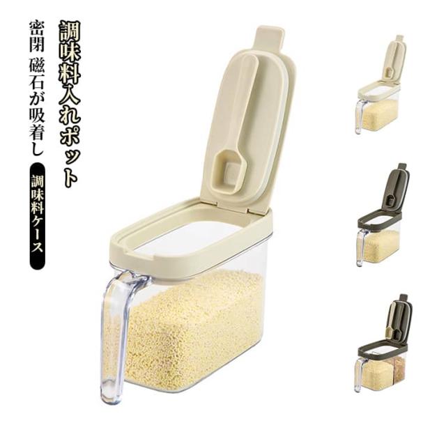調味料ケース 2個セット 磁石が吸着し 調味料ポット 砂糖入れ 小さじ 使いやすい スプーン付き 保存容器 塩 2個セット 片手 パッキン 調味料入れ すりきり キャニスター 収納 ワンタッチ コンパクト キッチン