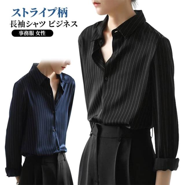 ブラウス ストライプ柄 日常 トップス 長袖シャツ ビジネス レディース 女性 春秋 フォマール ブラウス 事務服 シャツ 高通気性 通勤 トップス 大きサイズ 前開き