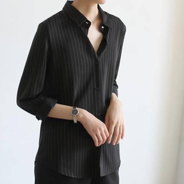 | 細やかなストライプ柄が、シンプルでありながら洗練された印象を与えます。 柔らかく快適な肌触りの素材が採用されており、長時間の着用でも快適な着心地を保ちます。 でシンプルなデザインなのでビジネススーツと好相性です。 | |