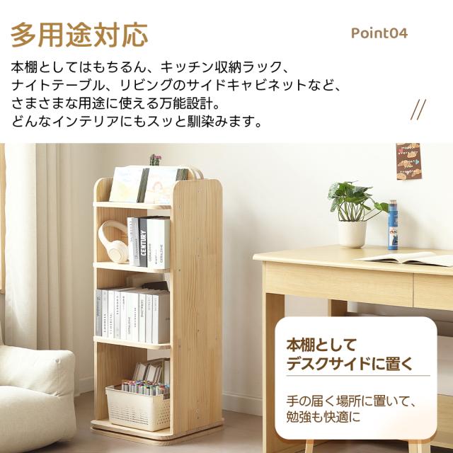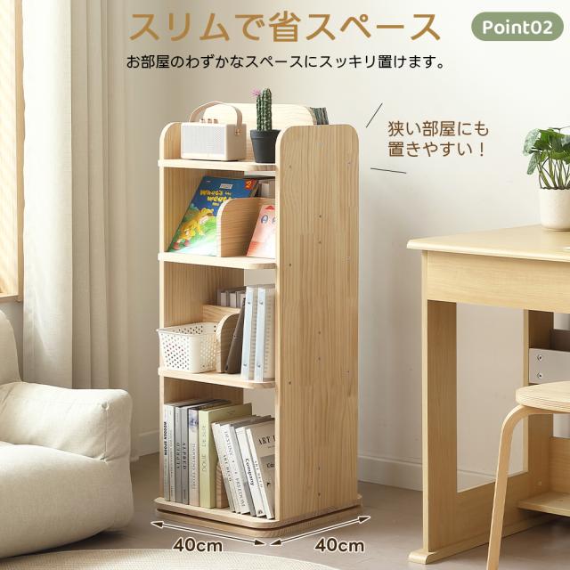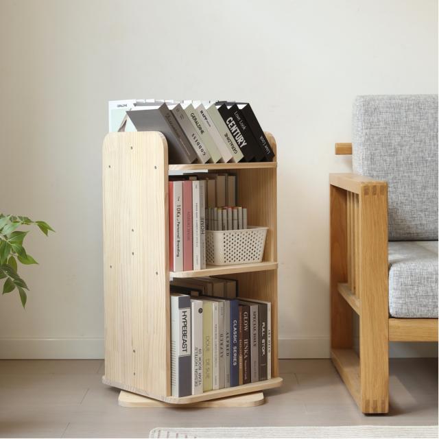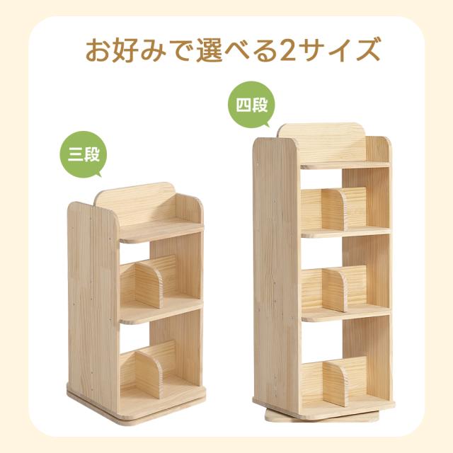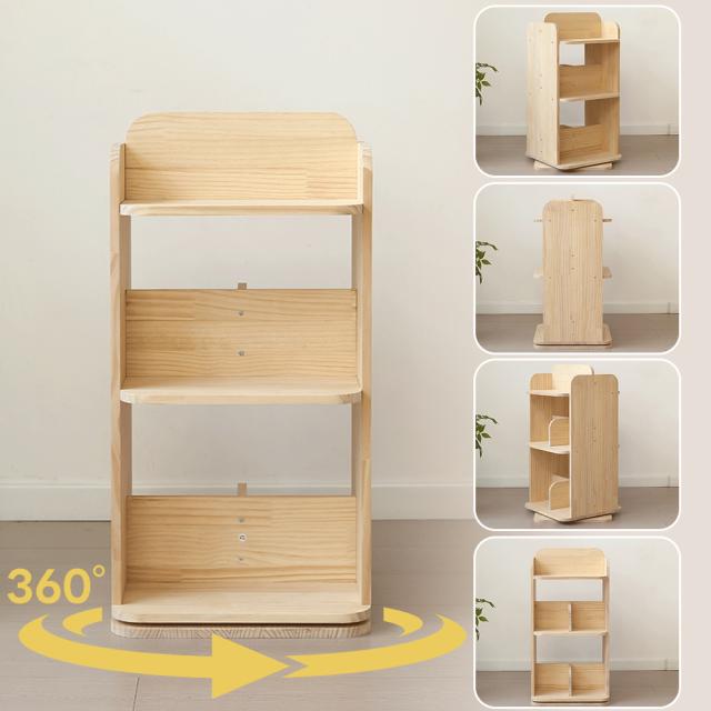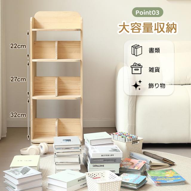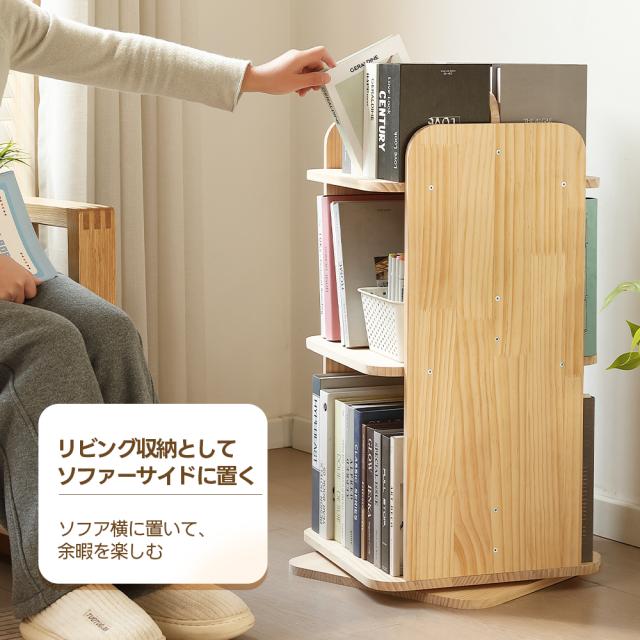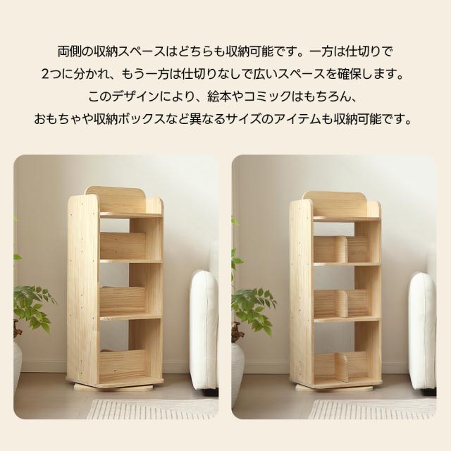OSJ 本棚 回転式 天然木製 パイン材 絵本棚 図鑑対応 コミック収納棚 スリム 回転式本棚 A4対応 子供 ブックシェルフ 飾り棚 回転本棚 絵本 漫画 DVDラック 回転ラック コンパクト おもちゃ ディスプレイ 本棚 大容量 収納 絵本ラック 省スペース