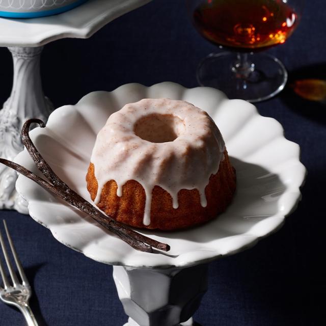 焼き上がったケーキ1つ1つをブランデーに浸し、 仕上げにバニラのグラサージュで甘い香りをまとわせました。
