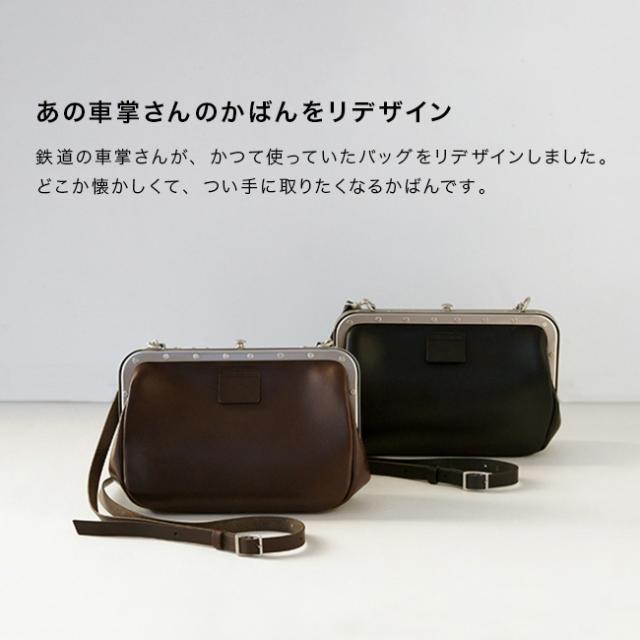 ・鉄道の車掌が使っていたかばんをモチーフに再デザインした口金ショルダーバッグです。