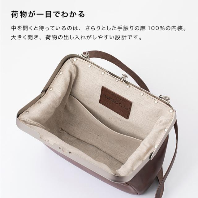 ・大きく開く口金仕様で、中身が見やすく出し入れがしやすい設計です。