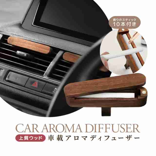 車用ディフューザー 替え芯計10本付き アロマディフューザー ウッド 芳香剤 カーディフューザー エアコン吹き出し口に CDIF356