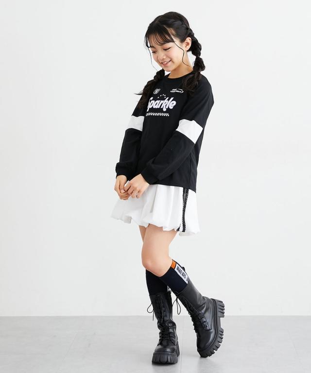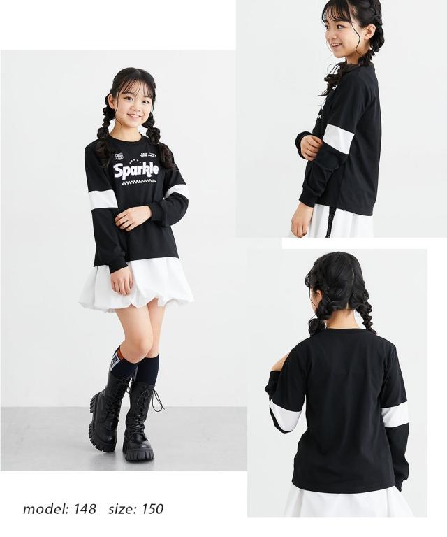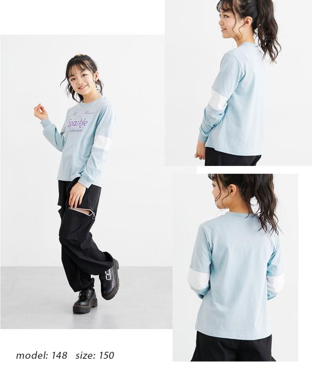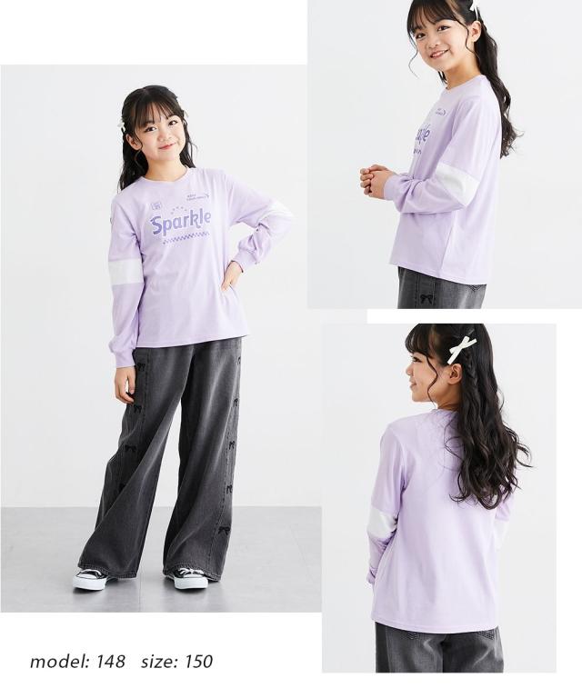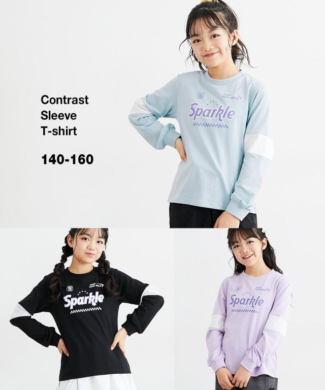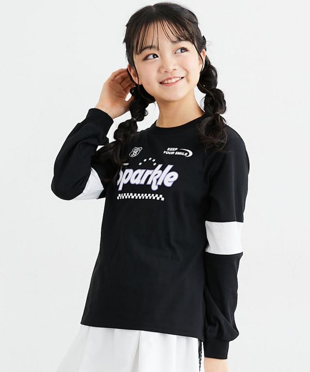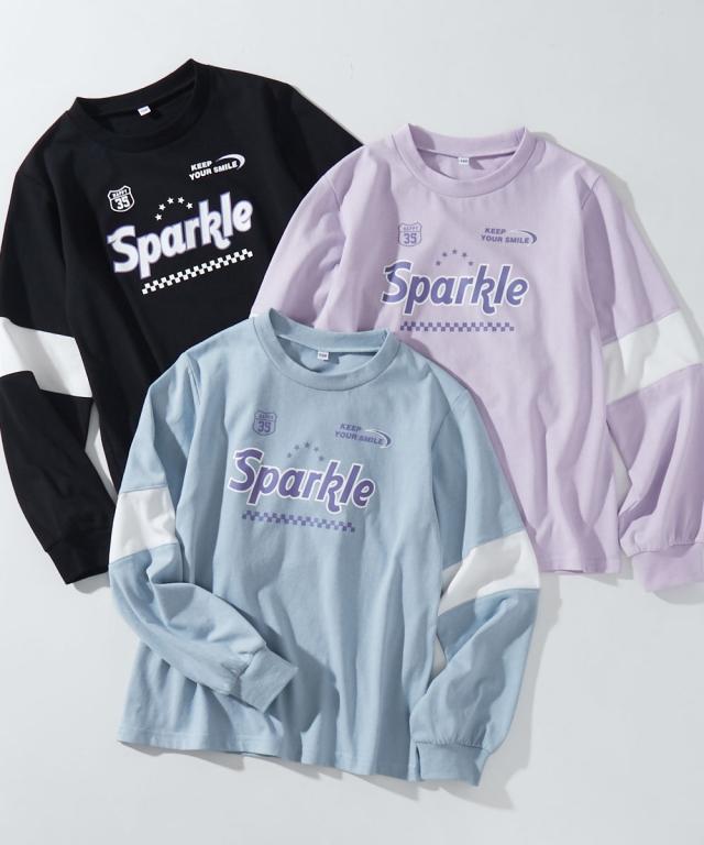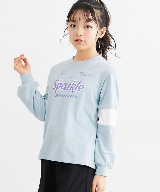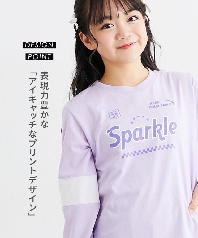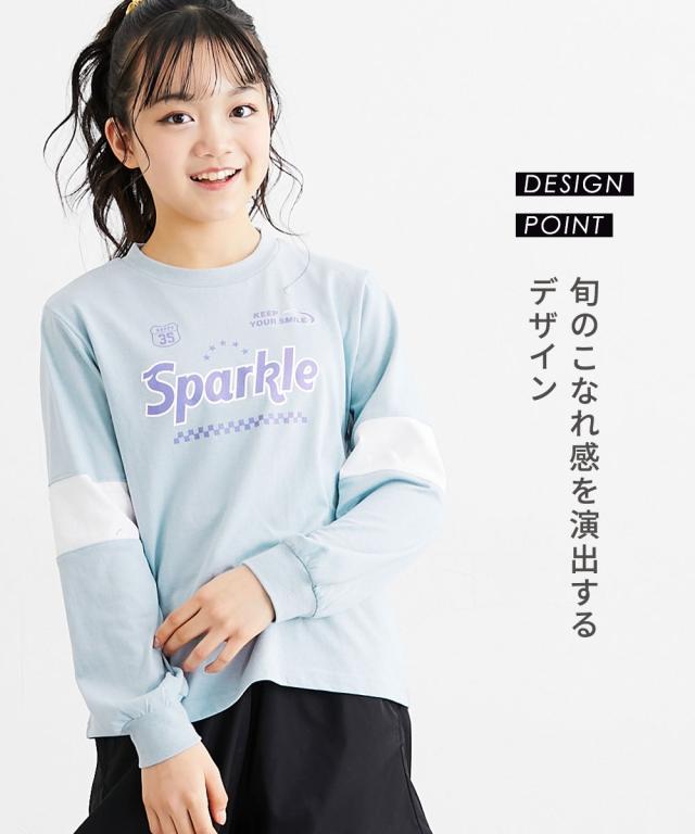 袖の切り替えデザインがパッと目を引く、めちゃくちゃ今っぽいTシャツが登場しました! フロントのキラキラしたロゴプリントがアクセントになって、一枚で着るだけでおしゃれ上級者に見えちゃいます。 ラベンダー、サックス、黒の3色はどれも可愛くて、どのお色にするか迷っちゃうかも。 通学はもちろん、休日のお出かけでも主役になれること間違いなし。 この夏絶対に持っておきたい、女の子の「大好き」が詰まったお気に入りアイテムです! ■デザイン ・こなれ感バツグンの「袖切り替えデザイン」 袖の途中でパッと色が変わるデザインが、シンプルになりすぎないおしゃれの秘密!スポーティーさと可愛さのバランスが絶妙です。 ・インパクト大の「ロゴプリント」 胸元には「Sparkle」のロゴと星、チェッカー柄をあしらいました。とってもアイキャッチで、お顔周りをパッと明るく見せてくれます。 ・手首まで抜かりない「リブ袖」 袖口がリブになっているから、少し腕まくりしてもおしゃれに決まるし、元気に動いてもズレにくいのが嬉しいポイントです。 ・ゆるっと着られる「今どきシルエット」 体のラインを拾いすぎない程よいゆとりがあって、誰でも可愛く着こなせます。ボ