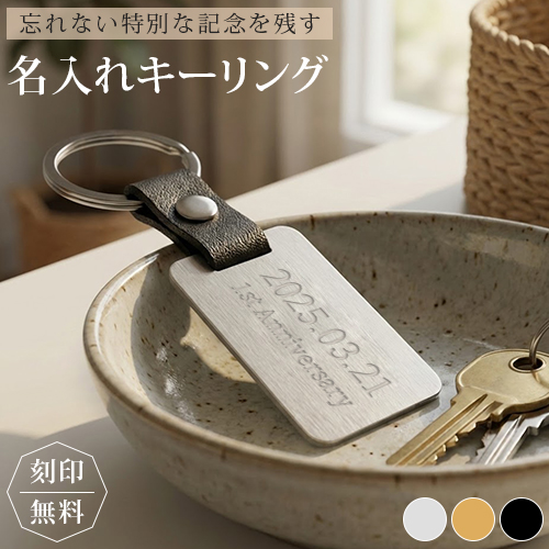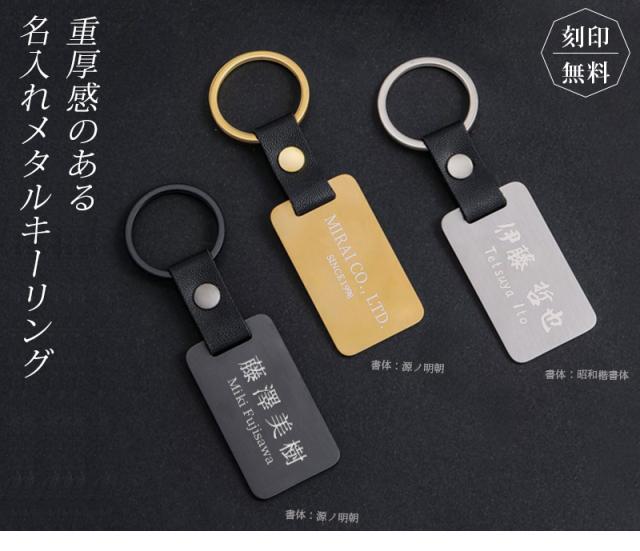 名入れ ネームタグ ネームプレート メタル PUレザーコンビ キーリング 刻印無料 オーダーメイド キーホルダー 高級感 バッグチャーム ギフト ステンレス ブラック シルバー ゴールド