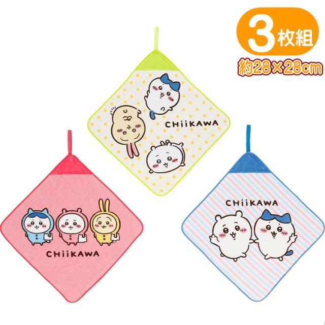 3枚組 丸眞 ループタオル ちいかわ アニメちいかわセット ハチワレ キャラクター ループ付きタオル 保育園 幼稚園 入園 入学 手拭きタオル
