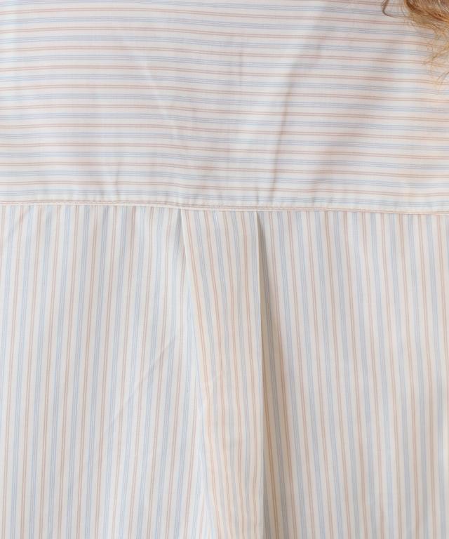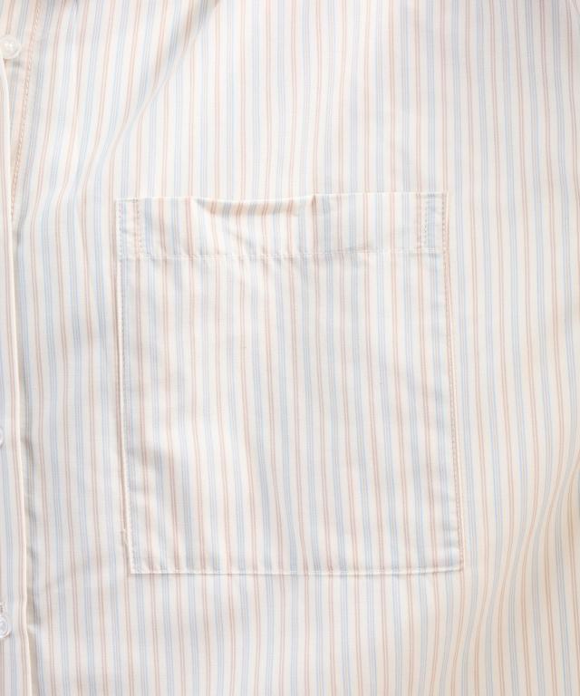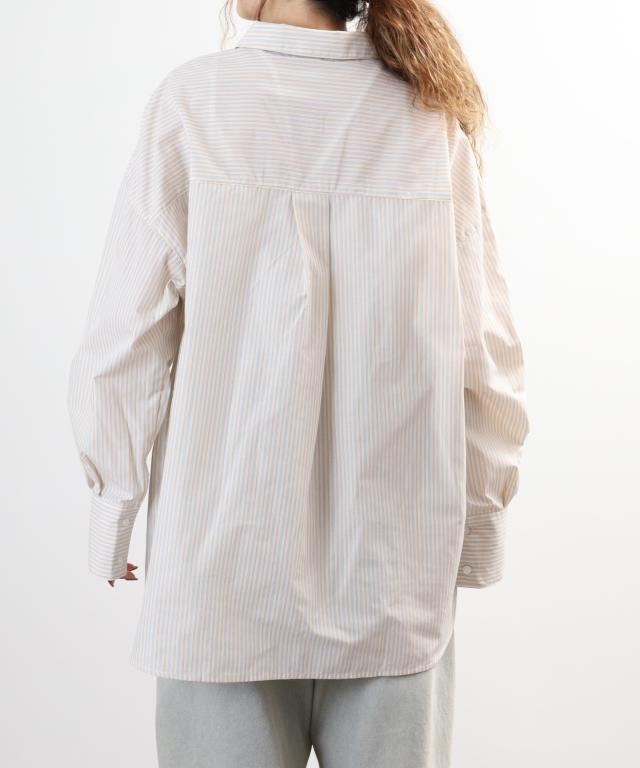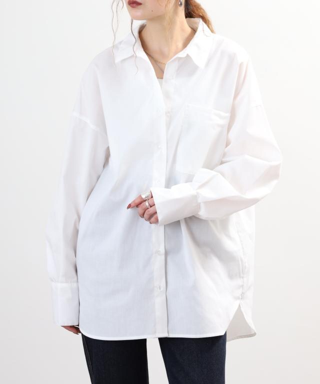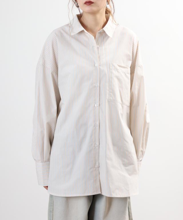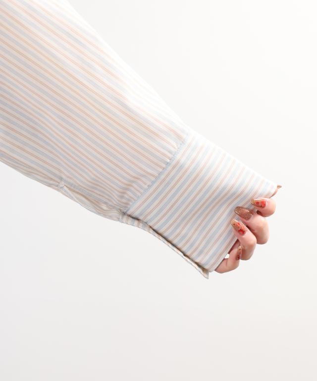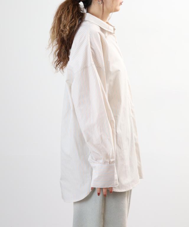 | 縦ラインをすっきり見せるストライプ柄と、ゆとりのあるシルエットが印象的なロング丈ビッグシャツ。ヒップラインをカバーする長めの着丈とボリュームスリーブの組み合わせで、体のラインを拾いにくく、リラックス感のある着こなしに取り入れやすい一枚です。 肩を落としたドロップショルダーと広めの身幅が、抜け感のあるシルエットを演出。前後差の少ないラウンドヘムにサイドスリットを入れることで、前だけインしたスタイリングや羽織りとしての着用にも対応します。胸ポケットや長めのカフスデザインがさりげないアクセントになり、シンプルなコーデにも取り入れやすい仕上がりです。 素材はポリエステルと綿をブレンドしたTCブロード生地を使用。軽やかで扱いやすく、デイリーコーデに取り入れやすい風合いが特徴です。デニムやワイドパンツでカジュアルに、スラックスやタイトスカートと合わせてオフィス寄りのスタイルにもアレンジしやすく、着回しの幅を広げてくれます。 【サイズ】F 着丈:79cm/バスト:130cm/肩幅:65cm/袖丈:50cm/裾幅:125cm 【素材】ポリエステル80%・綿20% 【原産国】中国 |