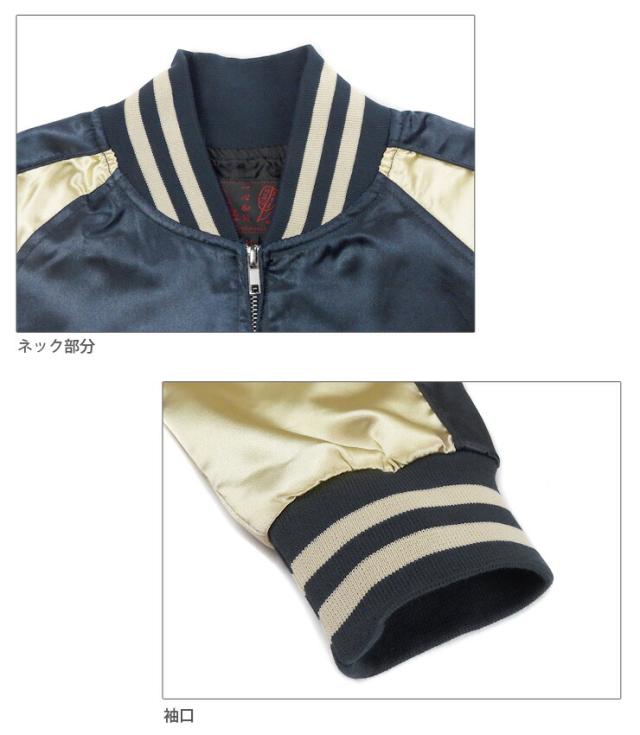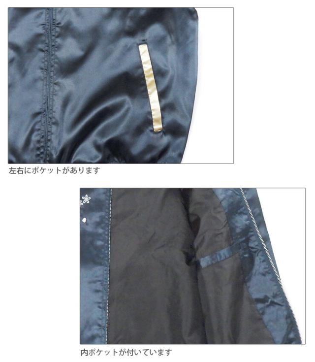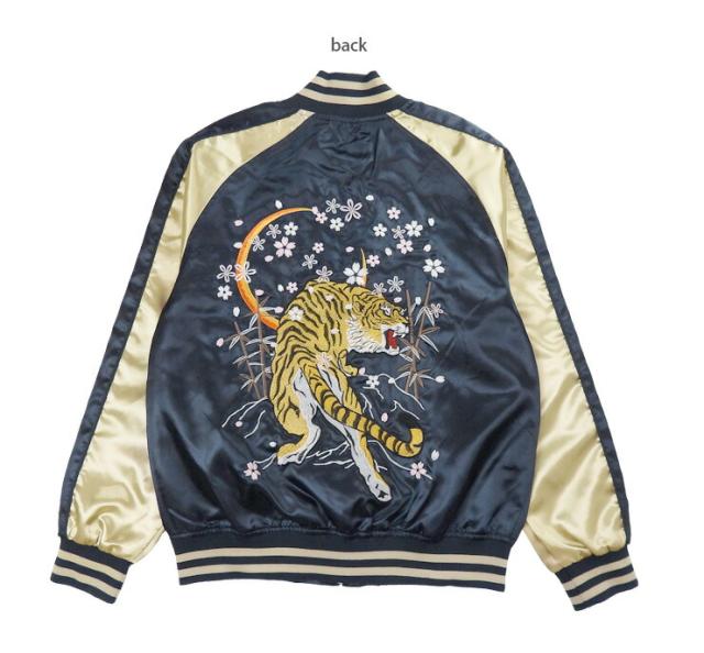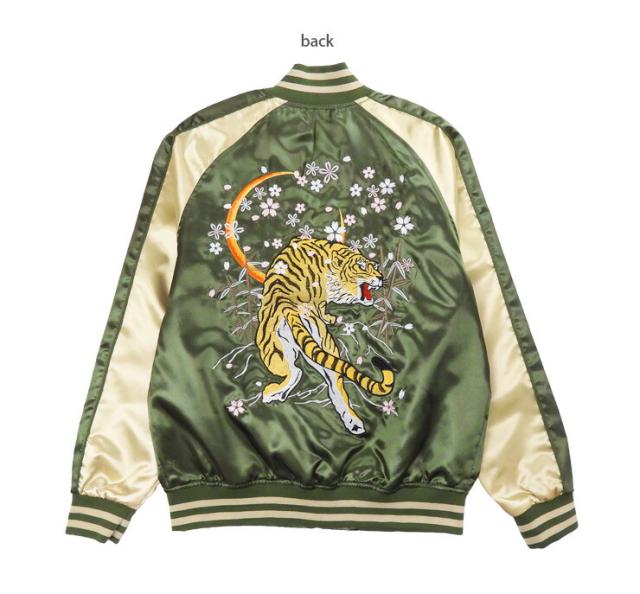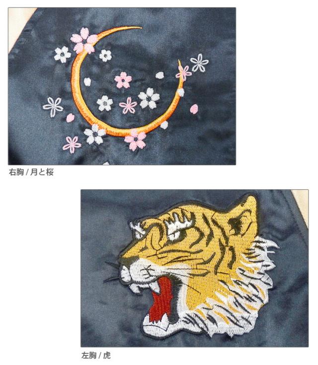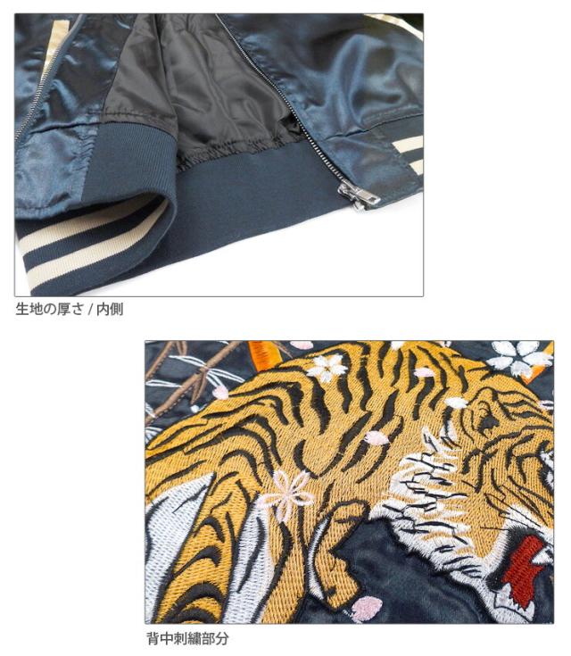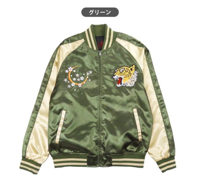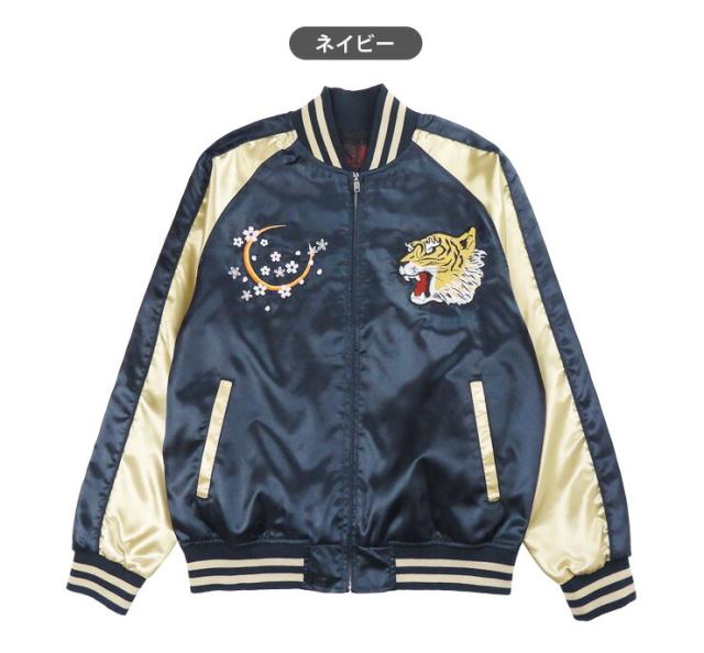 虎柄 サテン スカジャン メンズ 春秋冬 M L XL 長袖 53610 ネイビー グリーン レッド 一心如鏡 紳士 男性 和柄 和風 タイガー 本刺繍 ポケット NAVY D/GREEN RED 【大きいサイズあり】3127
