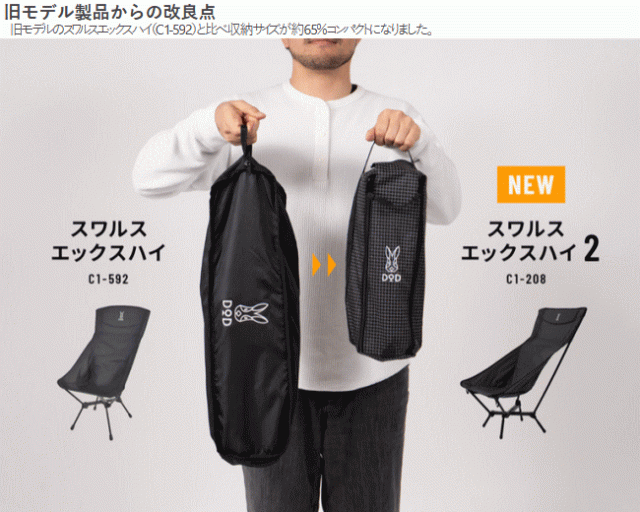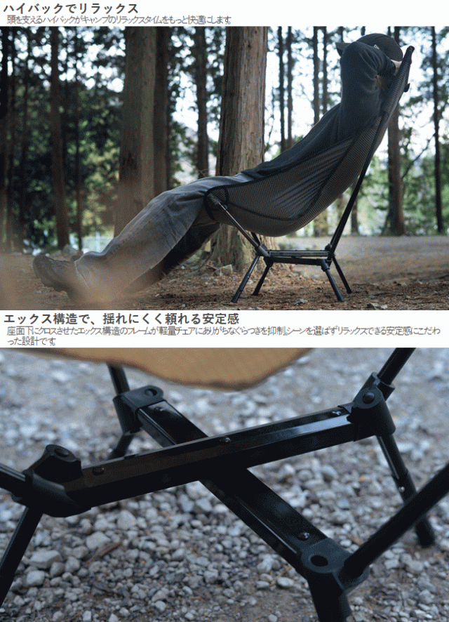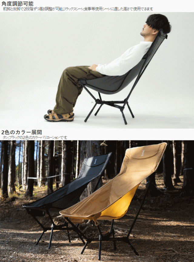DOD チェア ハイバックチェア 軽量チェア 角度調節可能 エックス構造 静止耐荷重130kg 専用キャリーバッグ ブラック タン スワルスエックスハイ2 C1-208