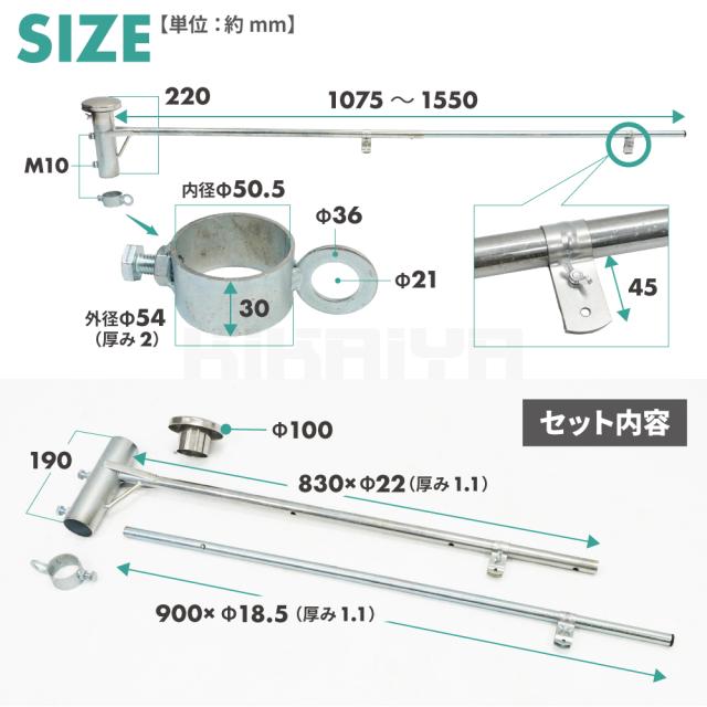 フラッグキーパー キャップ付き 単管パイプ 上段用 1m 1.3m 1.5m 安全旗 社旗 亜鉛メッキ KIKAIYA