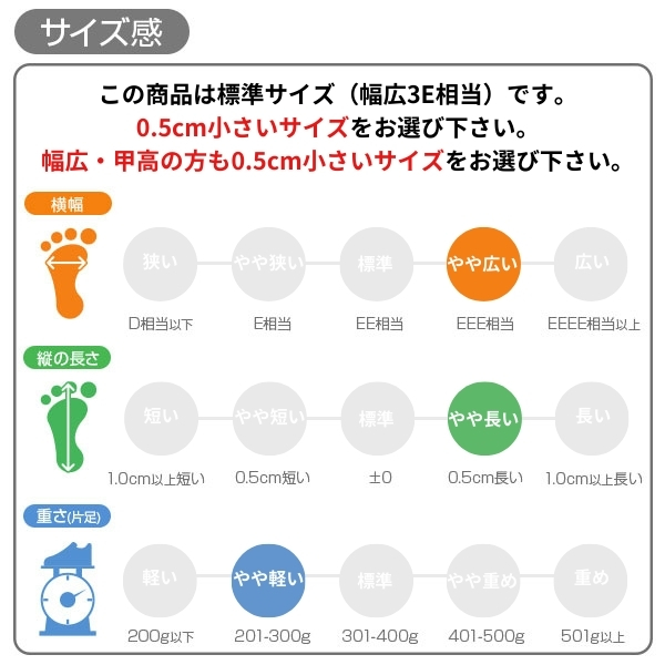 甲高、幅広の方→「0.5cm大きめ」