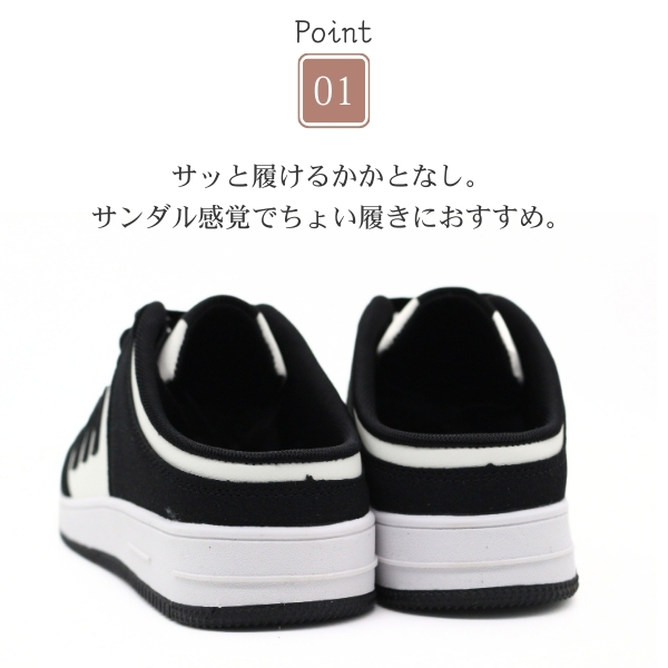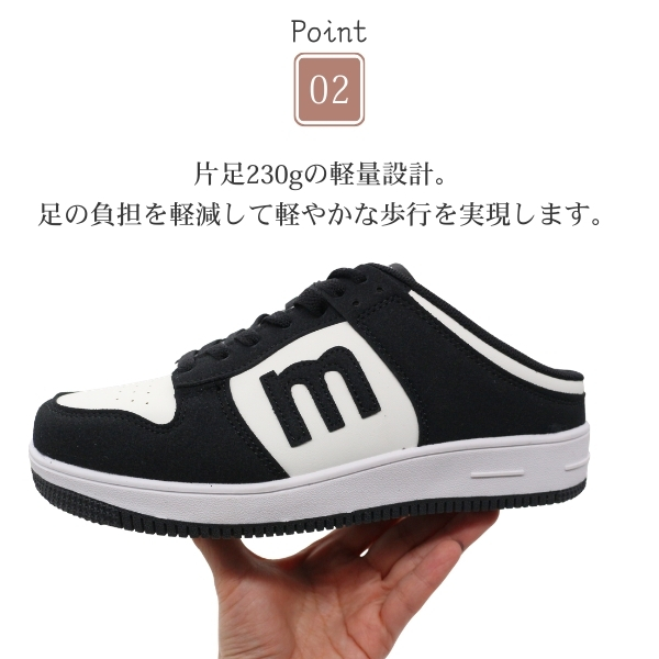 サッと履けるかかとなし。サンダル感覚でちょい履きにおすすめです。片足約230gの軽量設計。足の負担を軽減して軽やかな歩行を実現します。シンプル&おしゃれなデザイン。幅広いコーデに合わせやすい仕上がりに。