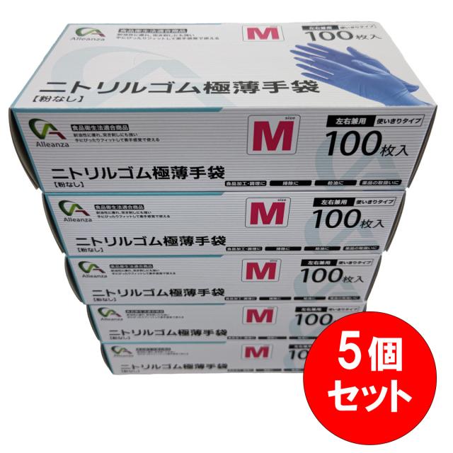 【在庫有・即納】【まとめ買い】アレンザジャパン ニトリル極薄手袋Mサイズ 100枚入り 5個セット ニトリル手袋 ニトリルゴム手袋 ゴム手袋 ニトリルグローブ 使い捨て手袋