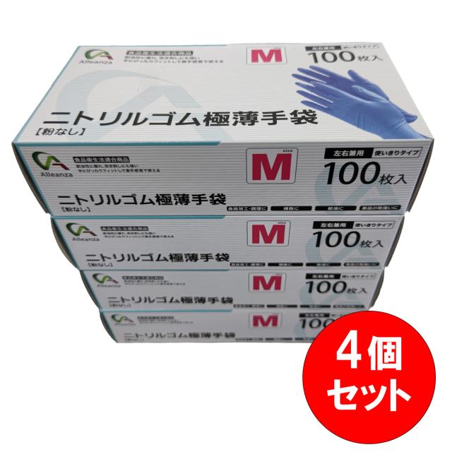【在庫有・即納】【まとめ買い】アレンザジャパン ニトリル極薄手袋Mサイズ 100枚入り 4個セット ニトリル手袋 ニトリルゴム手袋 ゴム手袋 ニトリルグローブ 使い捨て手袋
