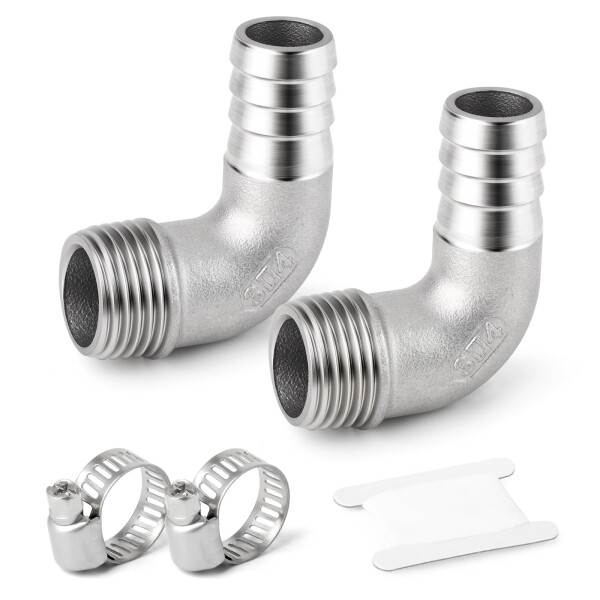 TAILONZ 2個304 鋳造オス・バーブ継手, 1/2PT-16mm 90°エルボバーブ継手ホースクランプ2個付き