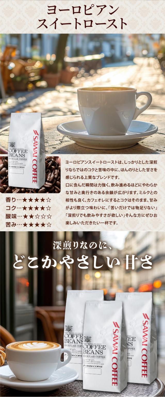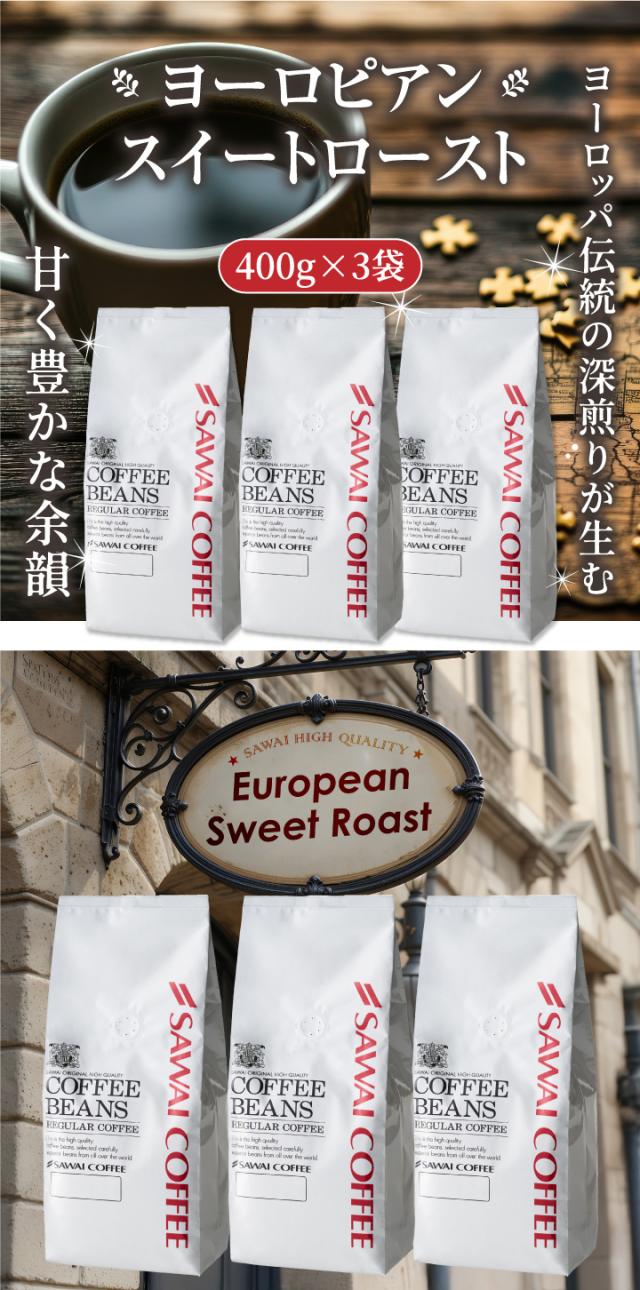 送料無料 コーヒー コーヒー豆 コーヒー粉 珈琲豆 豆のまま "甘み香るコク深煎り" 澤井珈琲 ヨーロピアンスイートロースト 1.2kg セット 400g×3袋 深煎り やさしい甘さ コク深い 苦味しっかり 香り高い 飲みやすい