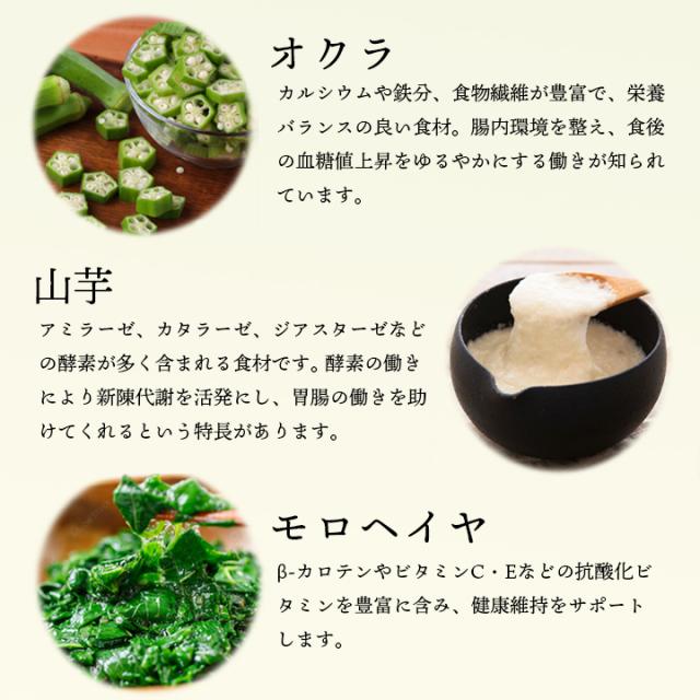 【原材料名】めかぶ(韓国産)、おくら、モロヘイヤ、醤油、山芋、砂糖、米発酵調味料、鰹節エキス、唐辛子、ごま油、昆布エキス、魚醤、果糖ブドウ糖液糖、食塩/調味料(アミノ酸等)、pH調整剤、増粘多糖類、保存料、(一部に小麦・大豆・山芋・ごまを含む)
