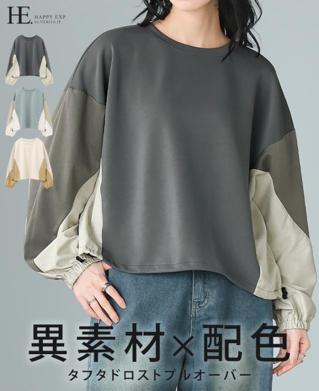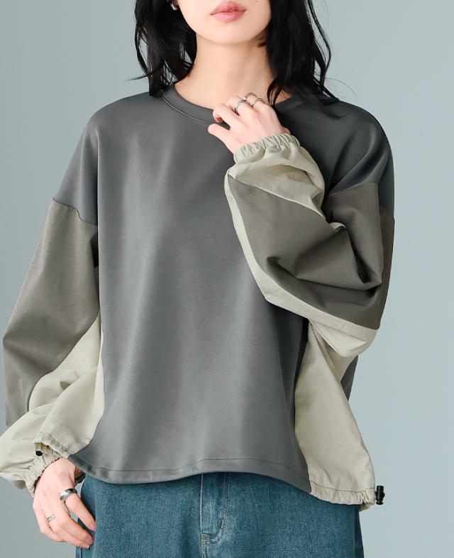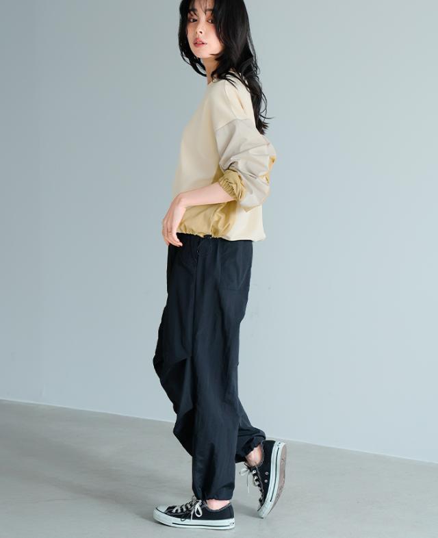 [新作限定P10%×メール便で送料無料]タフタ配色使いドロストプルオーバー★-【メール便1点まで】[M便 1/1]