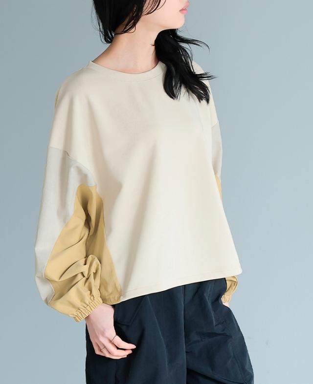 ![]() ![]() ![]() ![]() ![]() ![]() ![]() ![]() ![]() ![]() ![]() ![]() ![]() ![]() ![]() ![]() ![]() ![]() ![]() ![]() ![]() ![]() ![]() ■Comment 身頃と袖で生地を変えた、見た目に楽しい配色のトップス。 ゆったりとした袖は、袖口のゴムでメリハリを出したデザイン。 ハリ感がある生地なので、程よいボリュームシルエットをキープ。 身頃は伸縮性があり、裾はドロスト付きで簡単にシルエットチェンジ。 凝ったデザインの、大人のカジュアルアイテムです。 ■Size(cm) 【F】着丈55 バスト120 肩幅61 袖丈49 袖口22-36 天幅22 裾周り124 ■Fabric 【本体】ポリエスエル95% ポリウレタン5% 【別布部分】ポリエステル100% 生地感: 【本体】さらっとした、伸縮性のあるポンチ生地 【別布部分】さらっとした、少しハリ感のある生地 裏地:なし 伸縮性:身頃はあり 透け感:淡色は若干あり 生地の厚さ:普通 ■Weight 約278g ■Color ライトベージュ(薄いベージュ×グレーがかったアイボリー×くすんだイエロー) グレー(青みの強いグレー×くすんだベージュ×アイボリー) チャコール(青みの強い暗めのグレー×暗めのグレー×緑がかったアイボリー) なし ■Country of origin 中国 ■洗濯表示