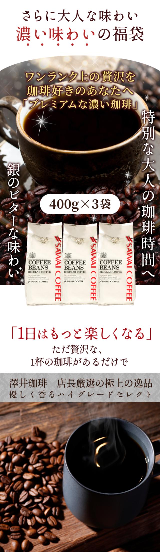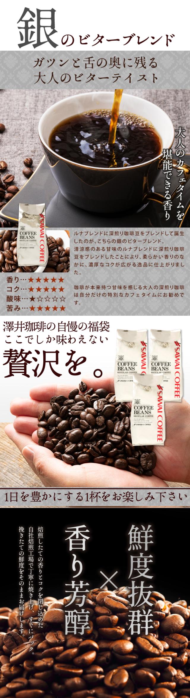 送料無料 コーヒー コーヒー豆 コーヒー粉 珈琲豆 豆のまま "苦み際立つ濃厚ブレンド" 澤井珈琲 銀のビターブレンド 1.2kg セット 400g×3袋 深煎り 苦味しっかり コク深い 濃厚 低酸味 香り高い カフェオレ向け