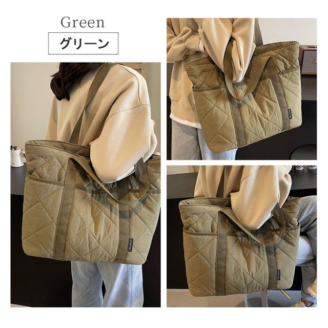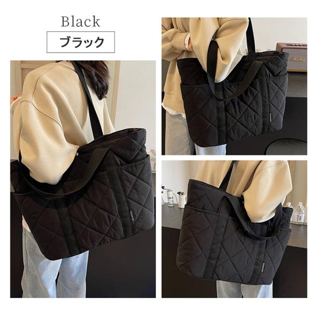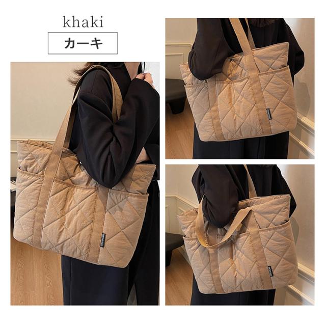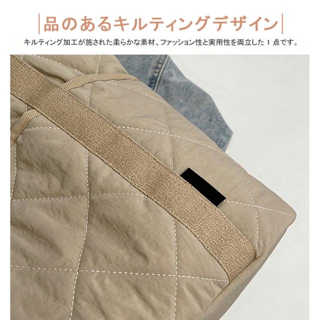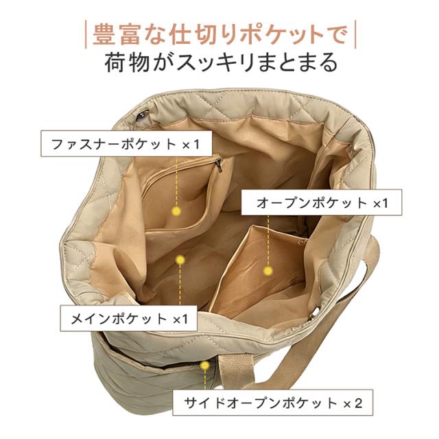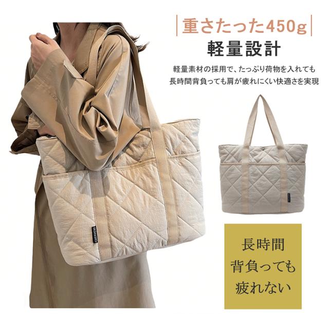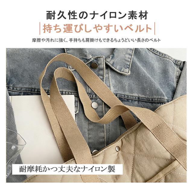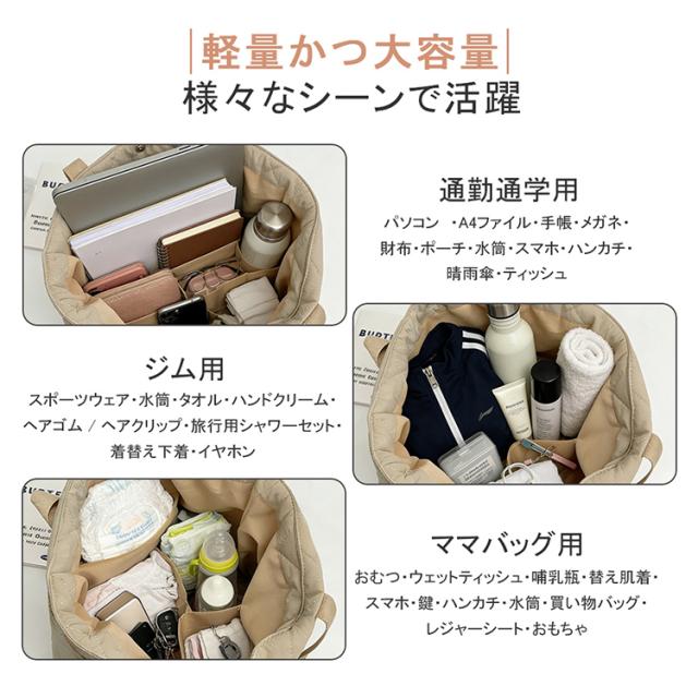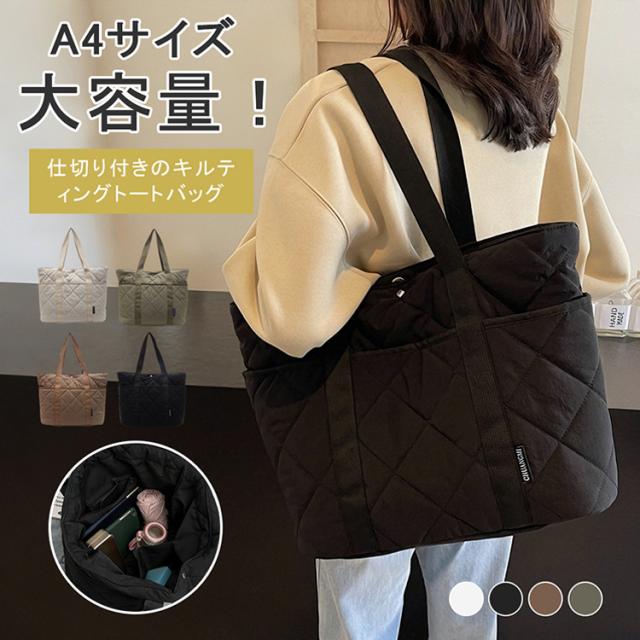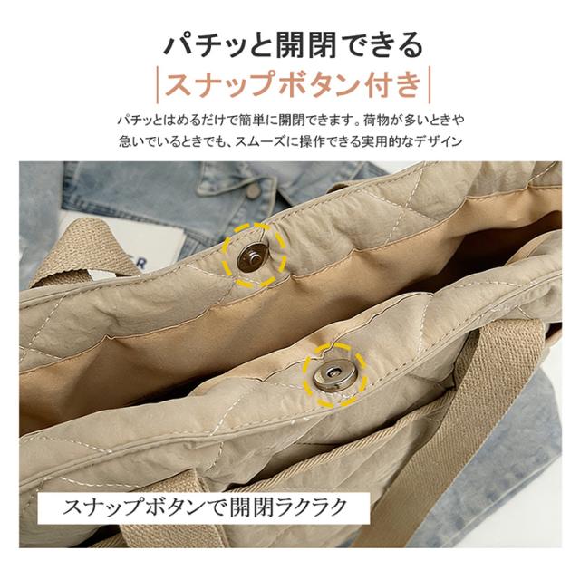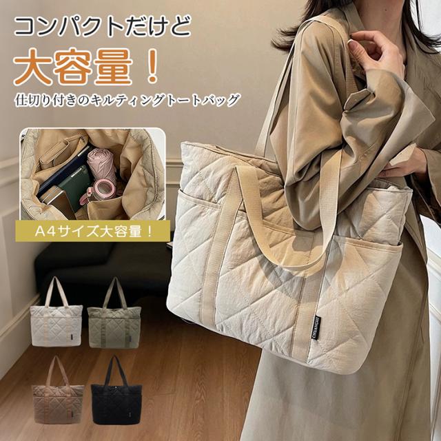 キルティングトートバッグ トートバッグ A4 対応 大容量 仕切り付き スナップボタン 軽量 450g ナイロン 通勤通学 ママバッグ 4 色展開 バッグ