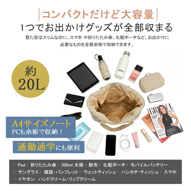 スッキリ収納できる、実力派キルティングトートバッグです。