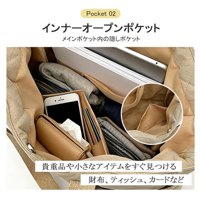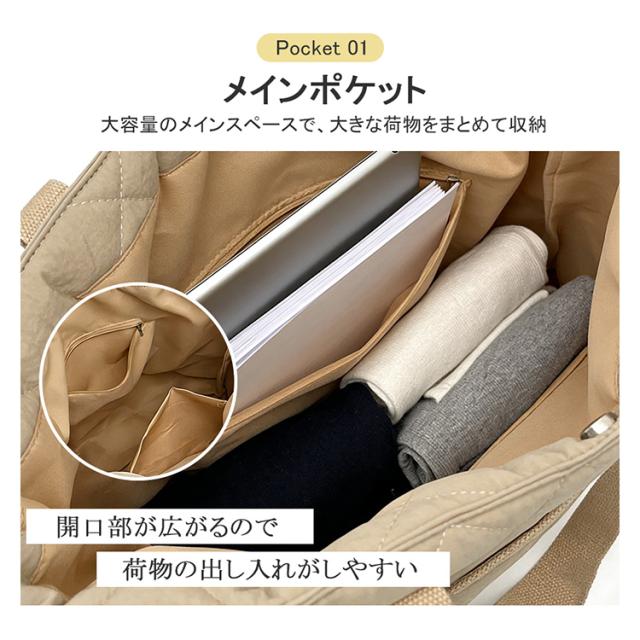 キルティングトートバッグ A4 対応 大容量 仕切り付き
