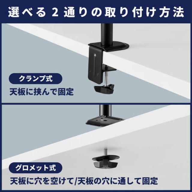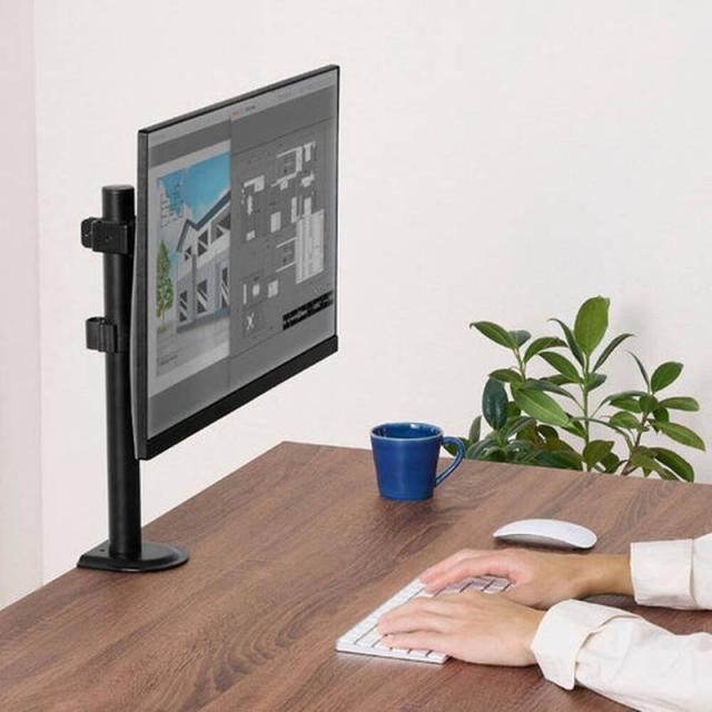 最適な目線の高さにモニターを調整できるシンプルな1面2軸タイプのモニターアームです。