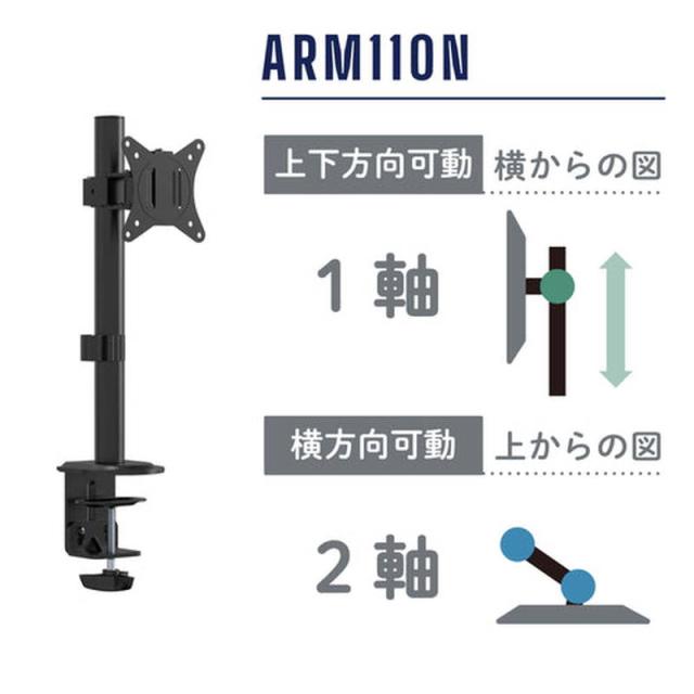 モニタースタンド ディスプレイスタンド キングジム モニターアーム(1面2軸タイプ)ARM110N-BK ブラック