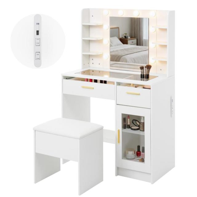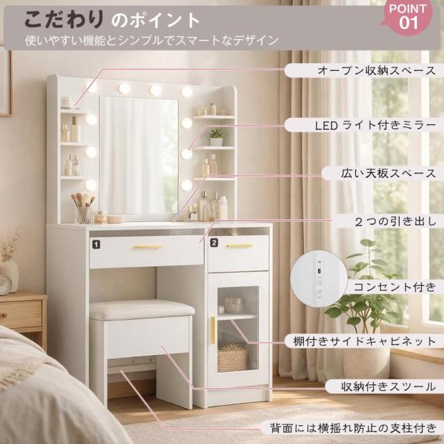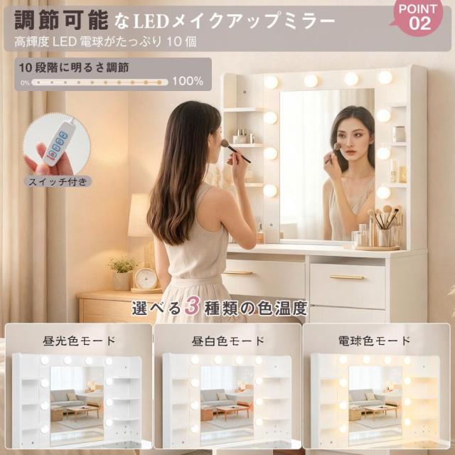 【クーポン配布中】ドレッサー化粧台 鏡台 化粧台 メイク台 コンセント付き キャビネット LEDライト USBポート テーブル 大容量収納 鏡台 ライト付き 女優ミラー 一人暮らし プレゼント