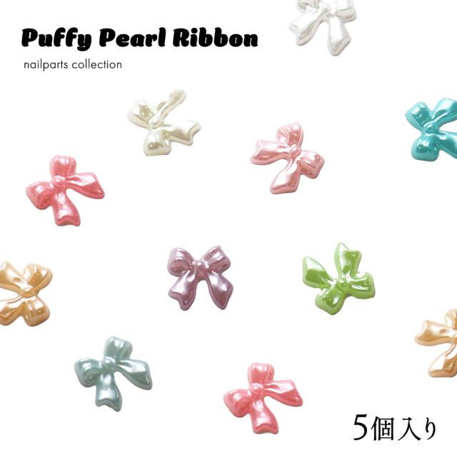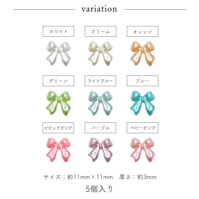ネイルパーツ ぷっくりパールリボンパーツ 全9色 5個入り