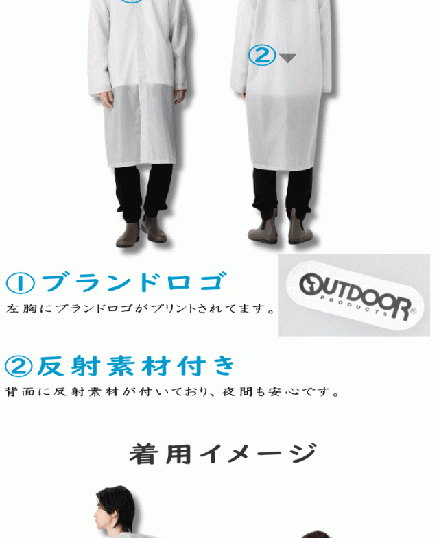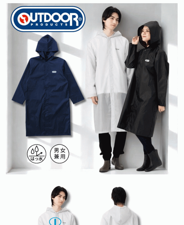 レインコート 雨具 合羽 カッパ outdoor products アウトドアプロダクツ ロング丈 自転車 通勤 通学 メンズ レディース ブラック色 ネイビー色 06003233