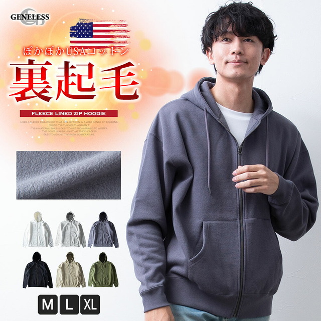 パーカー メンズ 裏起毛 暖かい USAコットン ジップパーカー フルジップパーカー 長袖 パーカ カットソー 秋冬 メンズパーカー ブルゾン 全6色 JP558000
