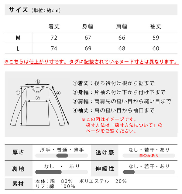| サイズ | 着丈 | 身幅 | 肩幅 | 袖丈 |